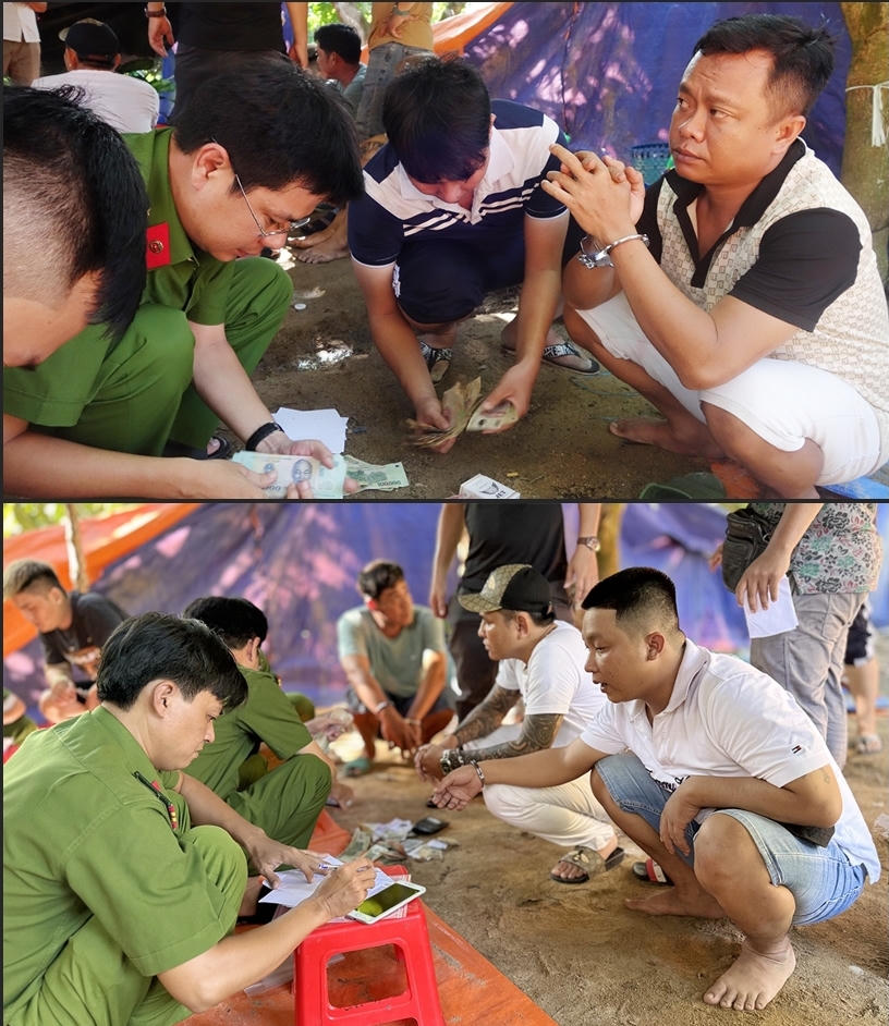Tại hiện trường, Tổ công tác kịp thời khống chế, bắt giữ 16 đối tượng, thu giữ trên chiếu bạc hơn 28 triệu đồng, thu giữ trên người các đối tượng hơn 103 triệu đồng, 17 điện thoại di động.