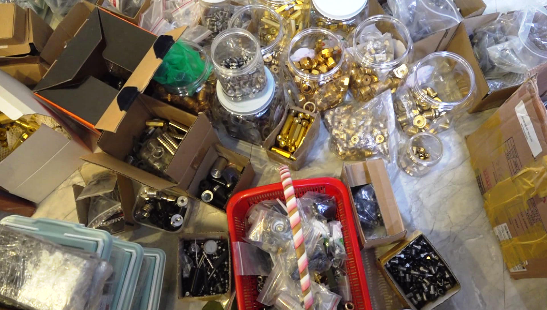 Công an phát hiện, tạm giữ tại nhà Nam hơn 1.500 linh kiện các loại phục vụ cho việc chế tạo, lắp ráp súng như: bộ phận cò súng, van bơm hơi, đồng hồ đo áp suất, đèn laser, ốp thước ngắm...