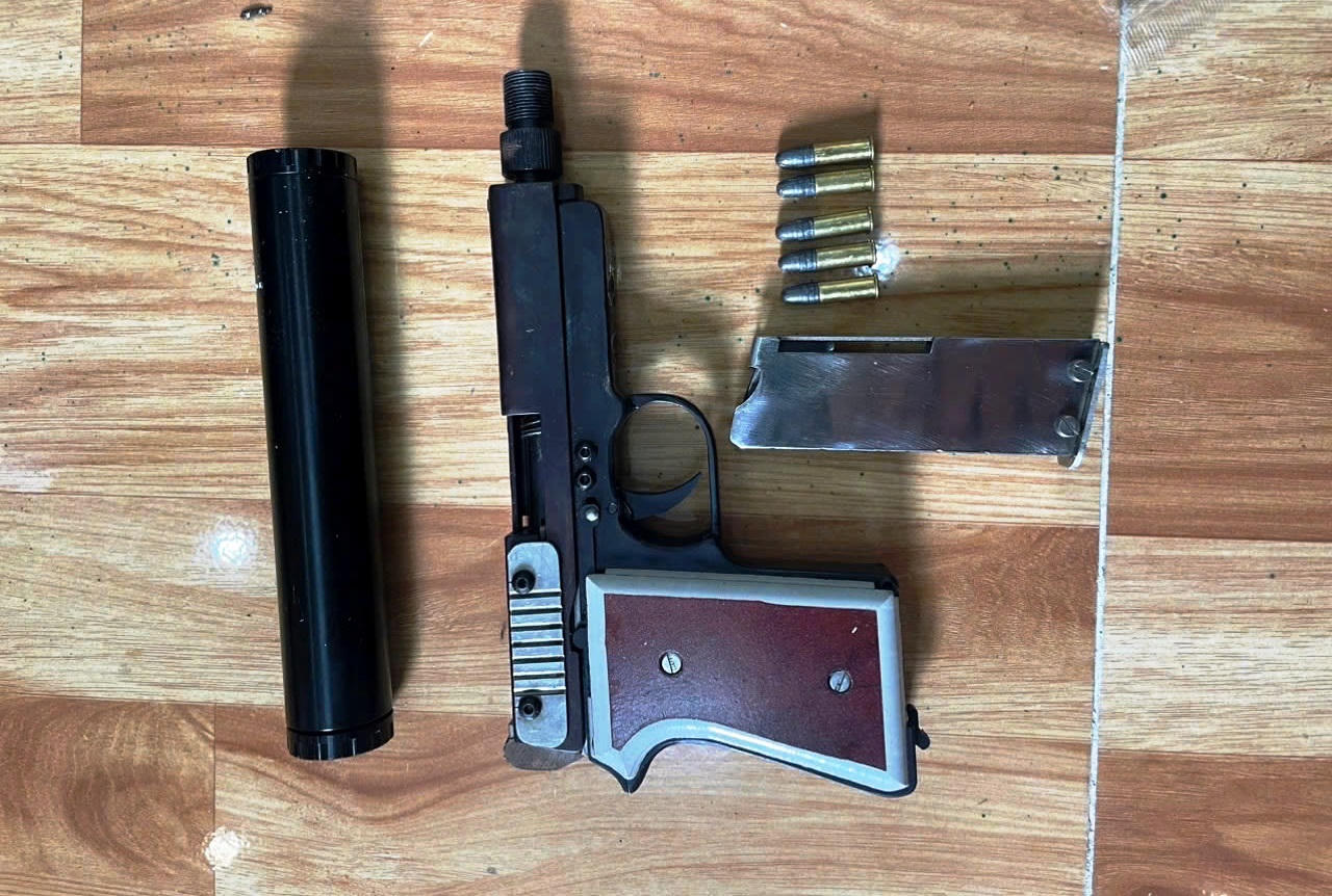 Đối tượng Phạm Văn Vĩnh (hình trên) và khẩu súng rulo của y. |