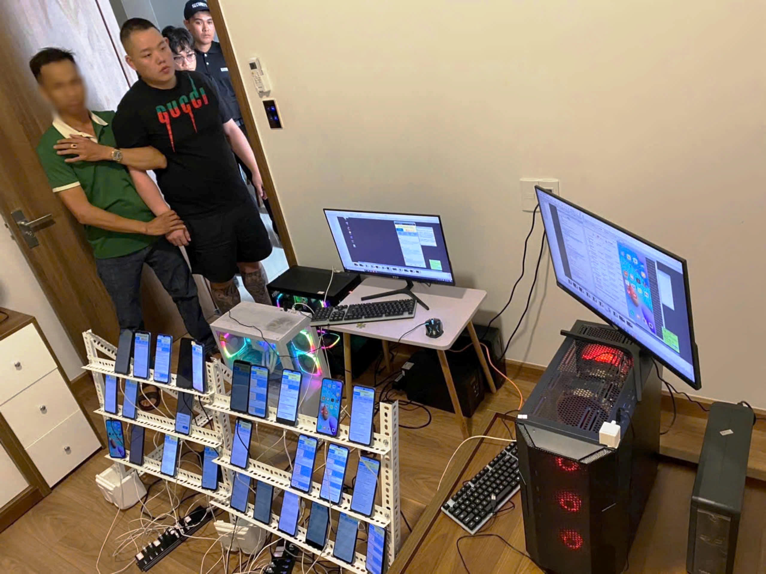 Sau khi thu thập đầy đủ tài liệu, chứng cứ, ngày 19/9/2024, được sự đồng ý của lãnh đạo Công an tỉnh, Phòng Cảnh sát Hình sự phối hợp với các phòng nghiệp vụ liên quan và Viện Kiểm sát Nhân dân tỉnh Quảng Nam, Phòng Cảnh sát Hình sự Công an TP HCM, Công an Quận 7, Công an TP Thủ Đức đồng loạt bắt giữ, khám xét khẩn cấp nơi ở các đối tượng liên quan gồm: Huỳnh Ngọc Tuấn (SN 1985, quê Quảng Nam, tạm trú TP HCM), Trần Thị Thu Trang (SN 1995, quê Đắk Lắk, tạm trú TP Hà Nội) và một đối tượng mang quốc tịch Đài Loan (Trung Quốc) đang ở tại chung cư trên địa bàn Quận 7, TP HCM.