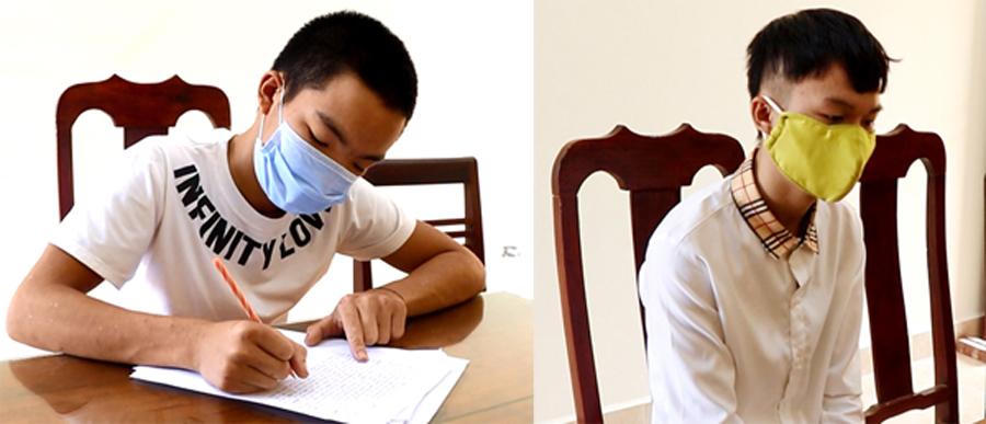 Đối tượng Hoàng Văn Biển (trái) và Hoàng Văn Hiệp tại cơ quan điều tra. |