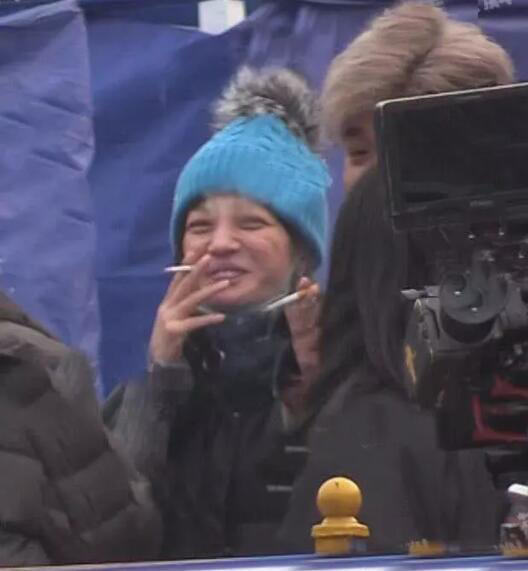 Triệu Vy trên phim trường "Ai cũng muốn gặp em" với vai trò nhà sản xuất. Nữ diễn viên ăn mặc "kín cổng cao tường", đội chiếc mũ len quả bông ngộ nghĩnh do thời tiết lạnh. Để mặt mộc không trang điểm, trông "Én nhỏ" có phần nhợt nhạt.