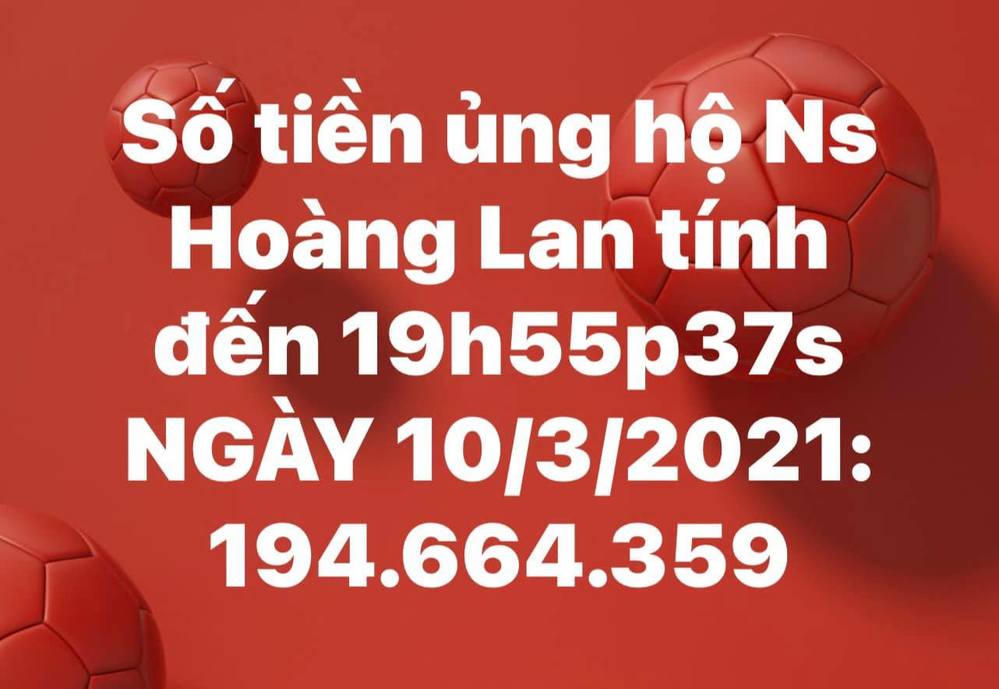 Diễn viên Trịnh Kim Chi mới công bố đầy đủ số tiền của từng cá nhân, khán giả, đồng nghiệp gửi đến giúp đỡ cho Hoàng Lan. Theo đó, chưa đến 1 ngày, đến khoảng 20h ngày 10/3 thì "bà bầu sân khấu" đã nhận được gần 200 triệu đồng.
