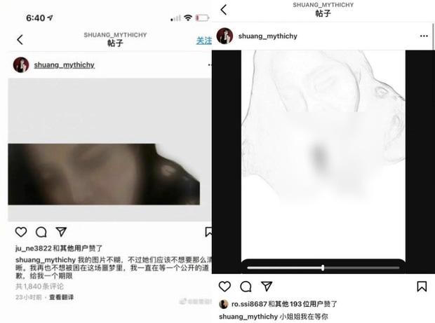 2 hình ảnh được Trịnh Sảng đăng lên tài khoản Weibo cùng lời lẽ thách thức (ảnh đã được làm mờ thêm) |