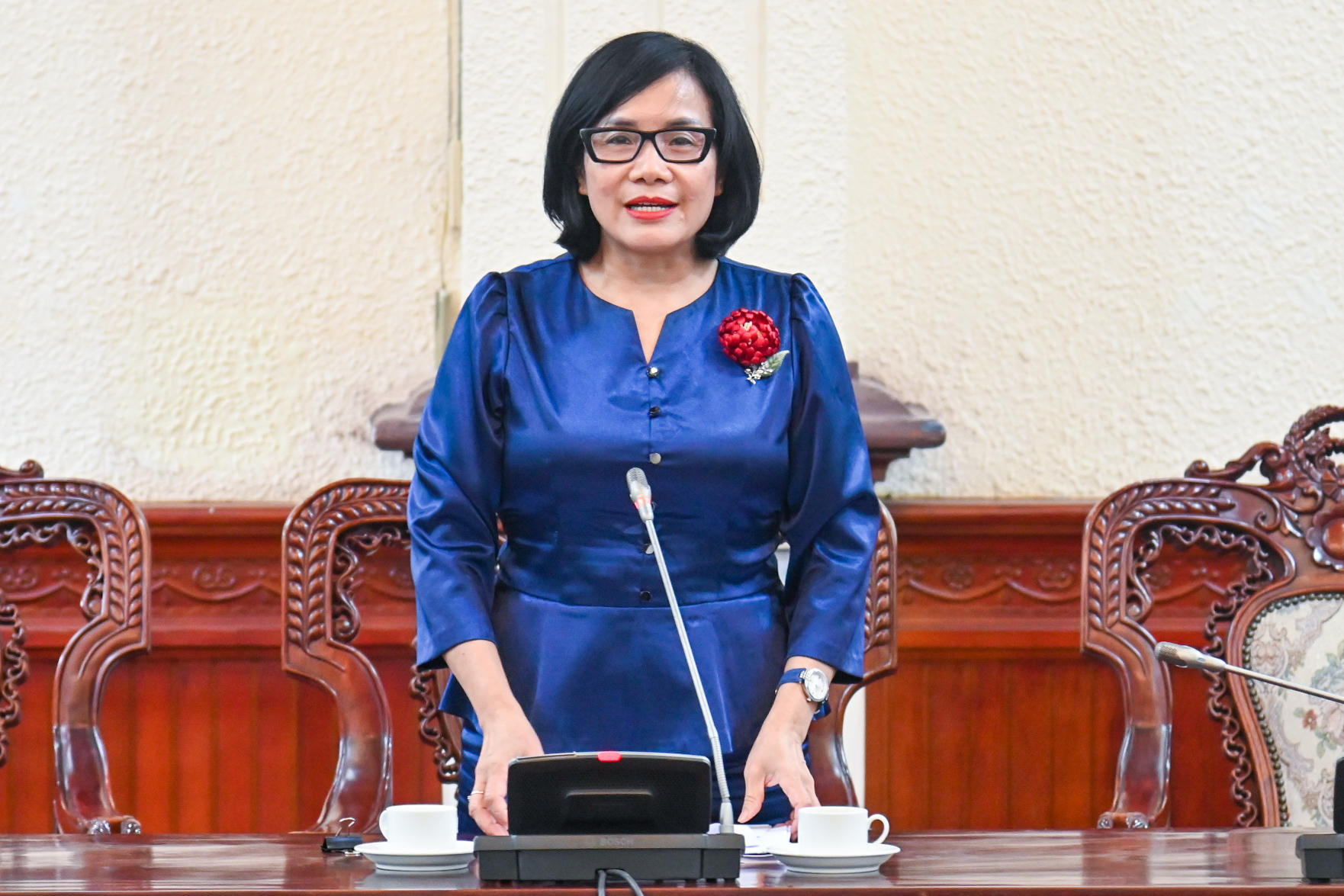 Thứ trưởng Bộ Tư pháp Đặng Hoàng Oanh kết luận cuộc họp thẩm định. |