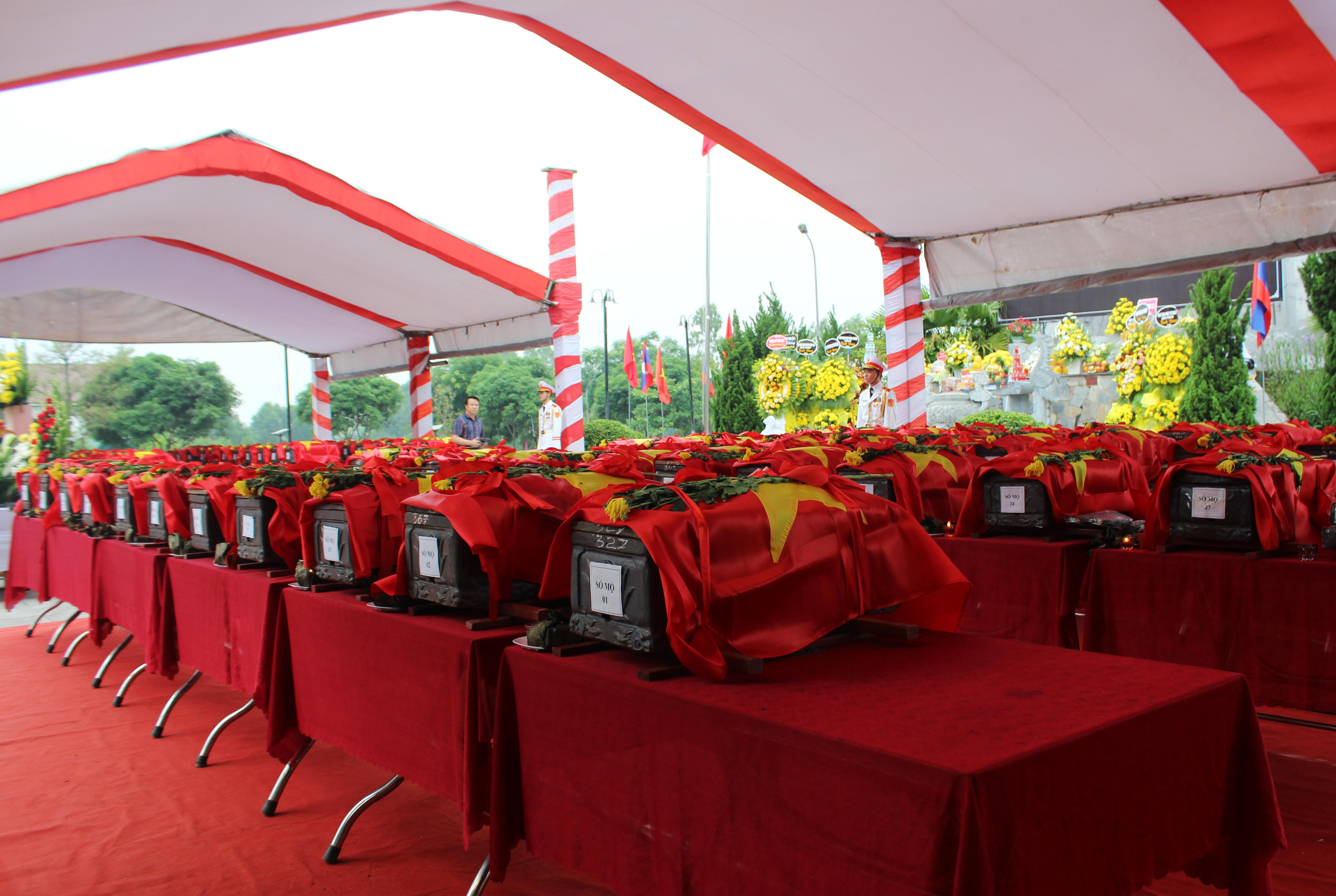 87 hài cốt liệt sĩ Quân tình nguyện và Chuyên gia Việt Nam hy sinh vì nhiệm vụ quốc tế cao cả trên đất nước bạn Lào. Ảnh Bùi Hoàng Ý |