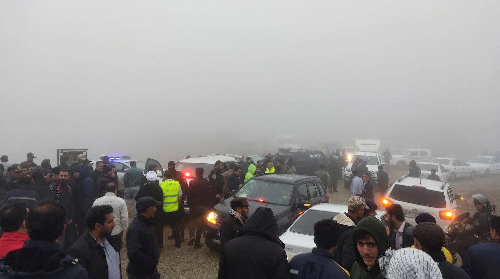 Các lực lượng cứu hộ cố gắng tiếp cận hiện trường vụ tai nạn máy bay. Ảnh: Azin Haghighi/Moj News Agency. |