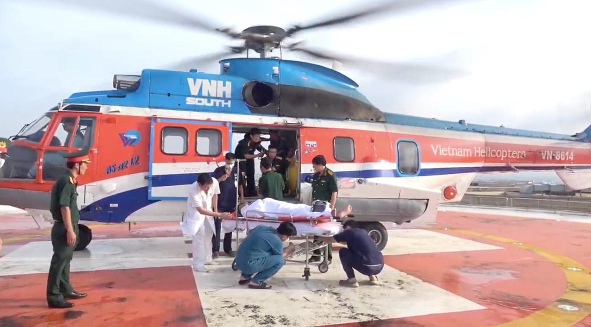Chỉ trong vòng 24h, Bộ Quốc phòng đã có lệnh đưa ba bệnh nhân vào đất liền bằng phương thức vận chuyển cấp cứu đường không. |