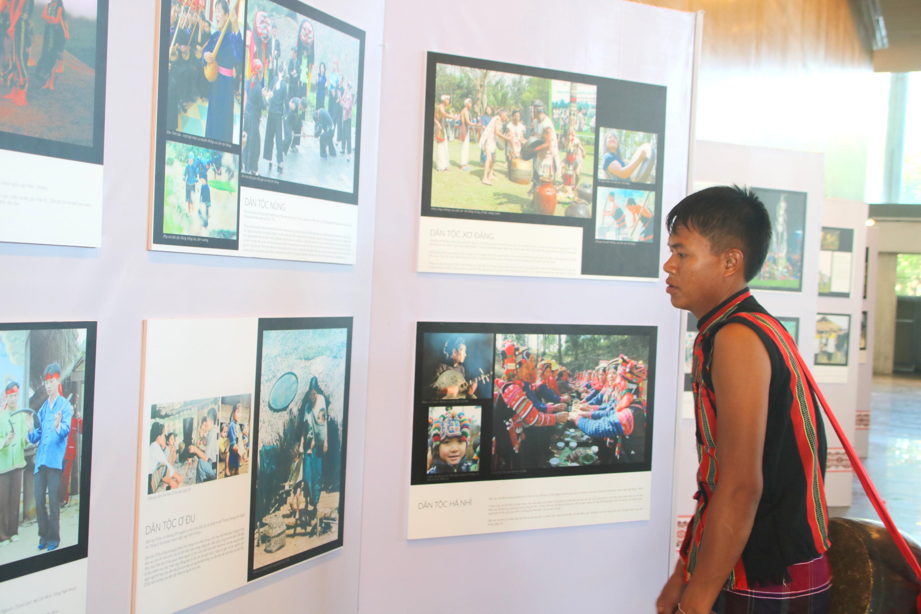 Không gian trưng bày ảnh với chủ đề “Các dân tộc thiểu số miền Trung đồng hành cùng sự phát triển của đất nước” nhằm giới thiệu trang phục, sinh hoạt văn hóa cộng đồng, các nghi thức tín ngưỡng, phong tục tập quán, nghệ thuật truyền thống, những di sản văn hóa vật thể, phi vật thể được UNESCO ghi danh, bản sắc văn hóa vùng miền và đặc biệt một số hình ảnh quý về Chủ tịch Hồ Chí Minh.