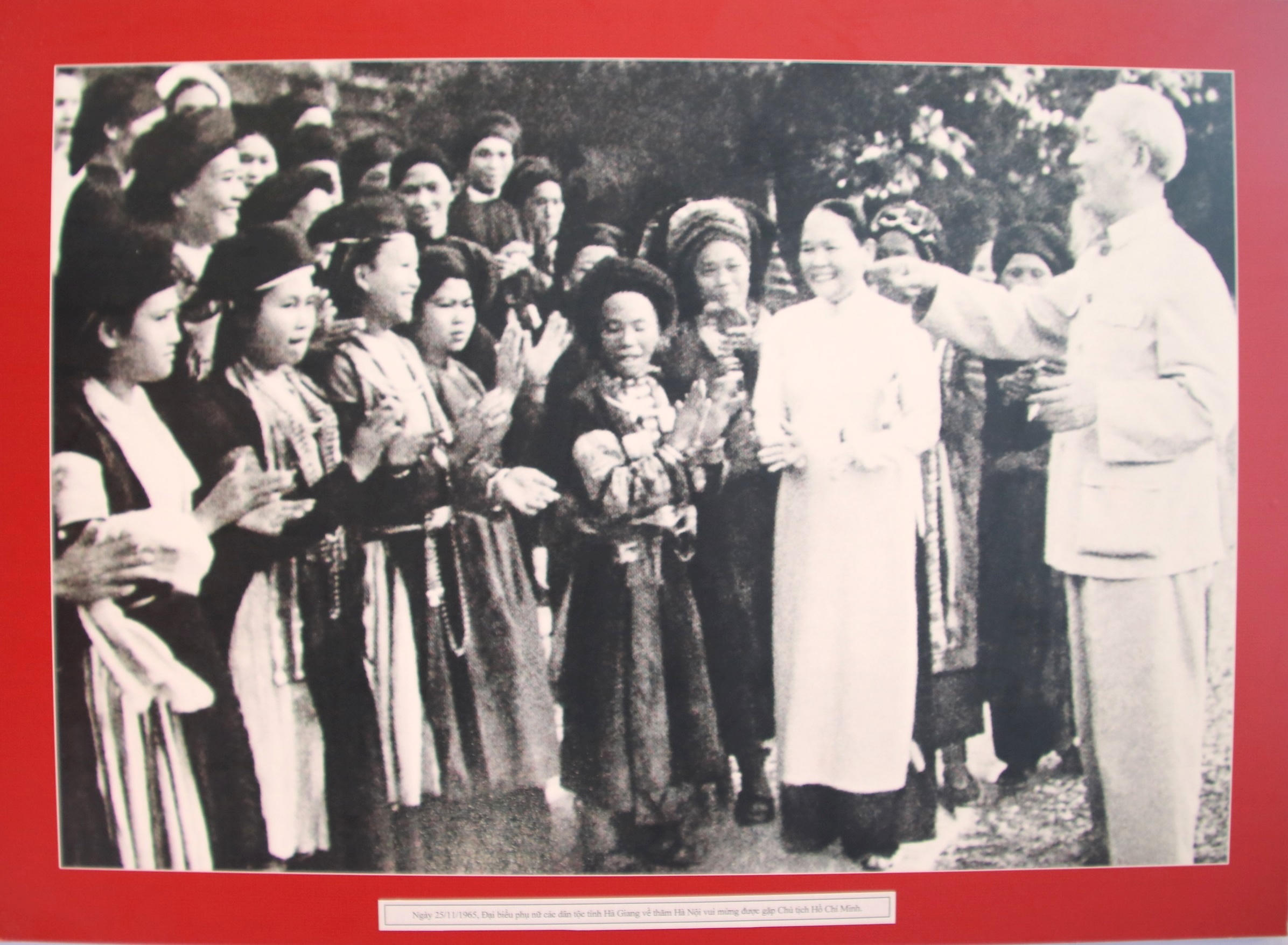 Ngày 25/11/1965, đại biểu phụ nữ các dân tộc tỉnh Hà Giang về thăm Hà Nội vui mừng được gặp Chủ tịch Hồ Chí Minh. |