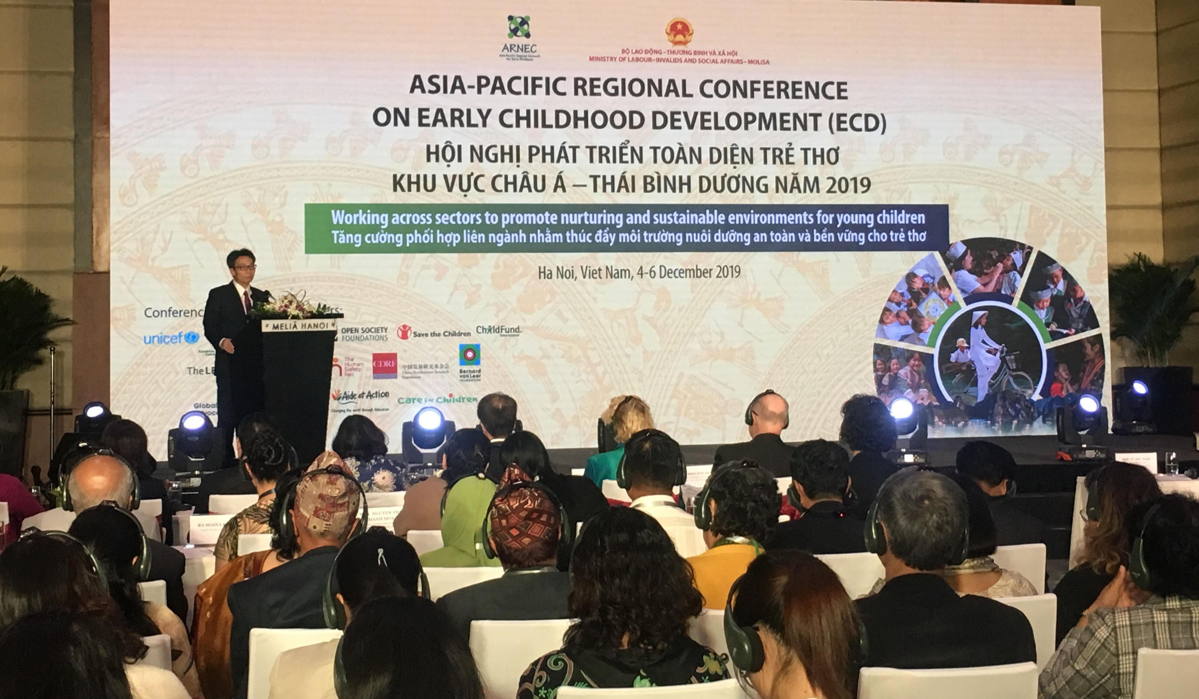 Hội nghị phát triển toàn diện trẻ thơ Khu vực Châu Á – Thái Bình Dương năm 2019 với chủ đề “Tăng cường phối hợp liên ngành nhằm thúc đẩy môi trường nuôi dưỡng, an toàn và bền vững cho trẻ thơ” do Bộ LĐTB&XH phối hợp với Mạng lưới phát triển trẻ thơ khu vực Châu Á – Thái Bình Dương (ARNEC) tổ chức tại Hà Nội từ 4-6/12.
