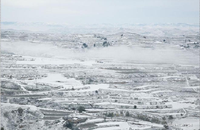 Quang cảnh tuyết trắng xóa ở Định Tây (Cam Túc, Trung Quốc)