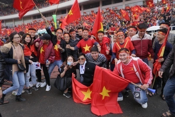 (PLO) - Trung Ruồi và Minh Tít cùng các nghệ sĩ của Nhà hát Tuổi trẻ dễ dàng được người hâm mô nhận diện giữa biển người khổng lồ ở Mỹ Đình. Hai diễn viên này đang là cặp đôi nghệ sĩ trẻ rất hot và vô cùng ăn ý trong diễn xuất qua các bộ phim nhất là những bộ phim hài Tết.