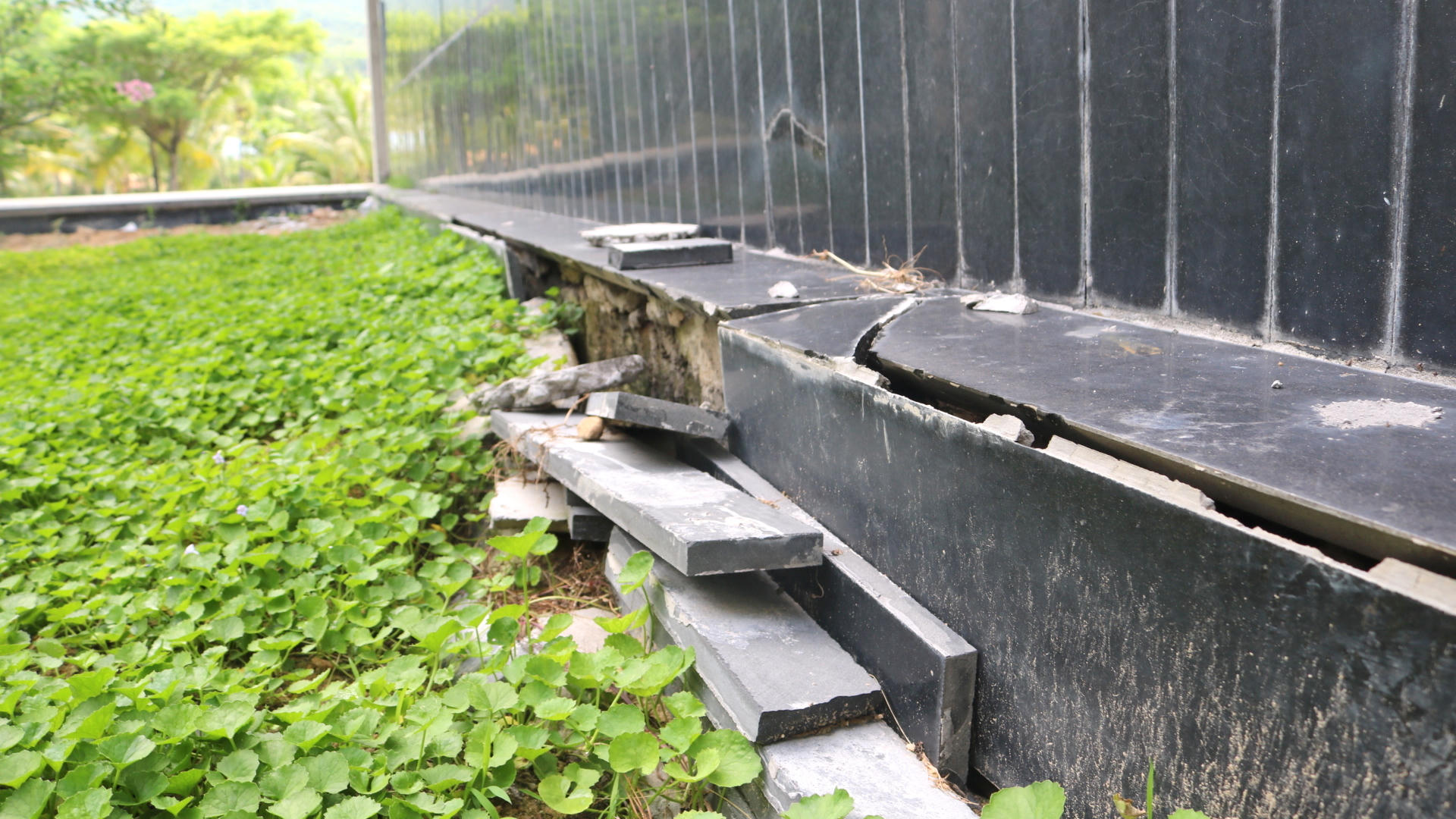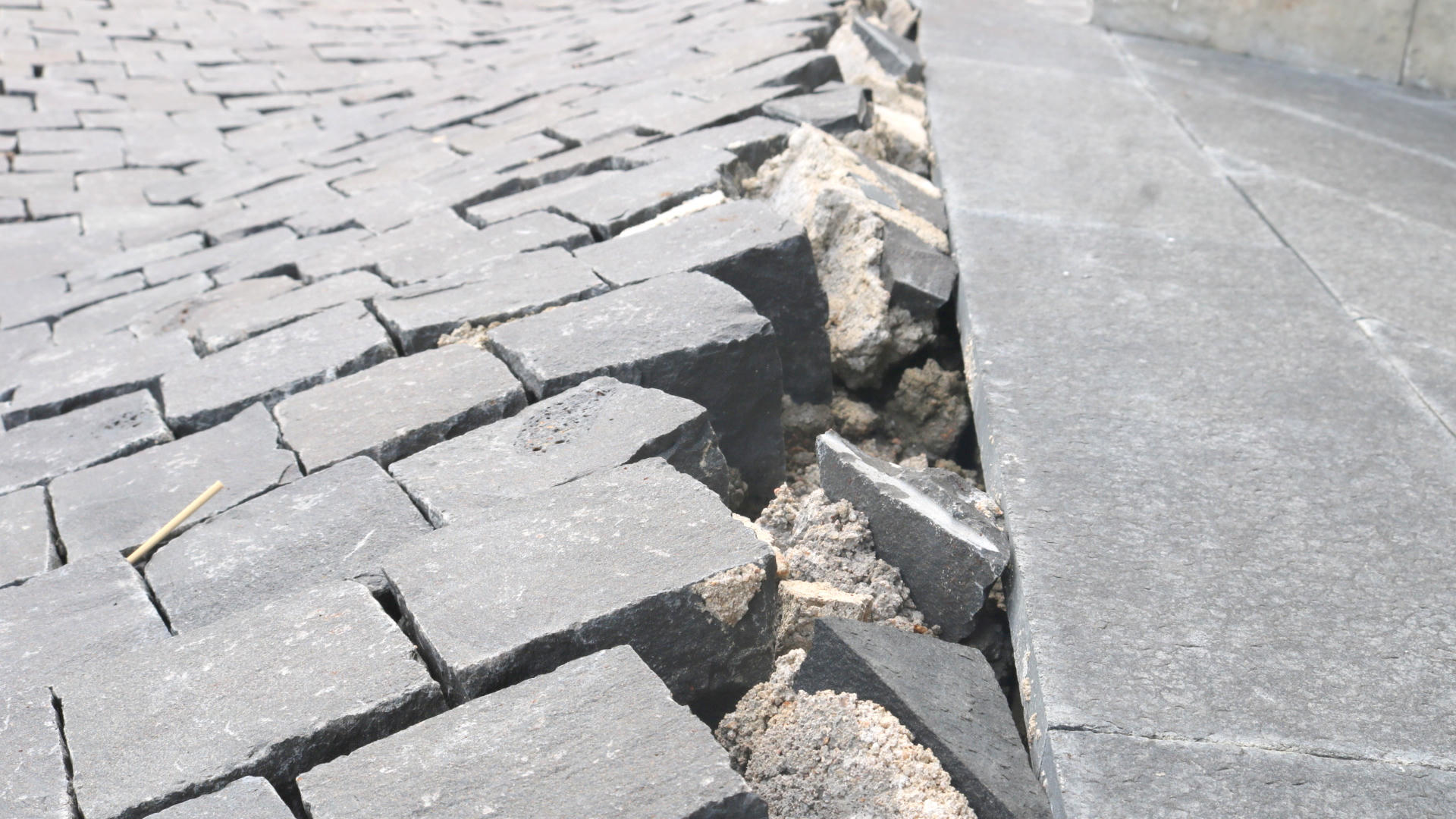 Nền gạch bị lún, đứt gãy.