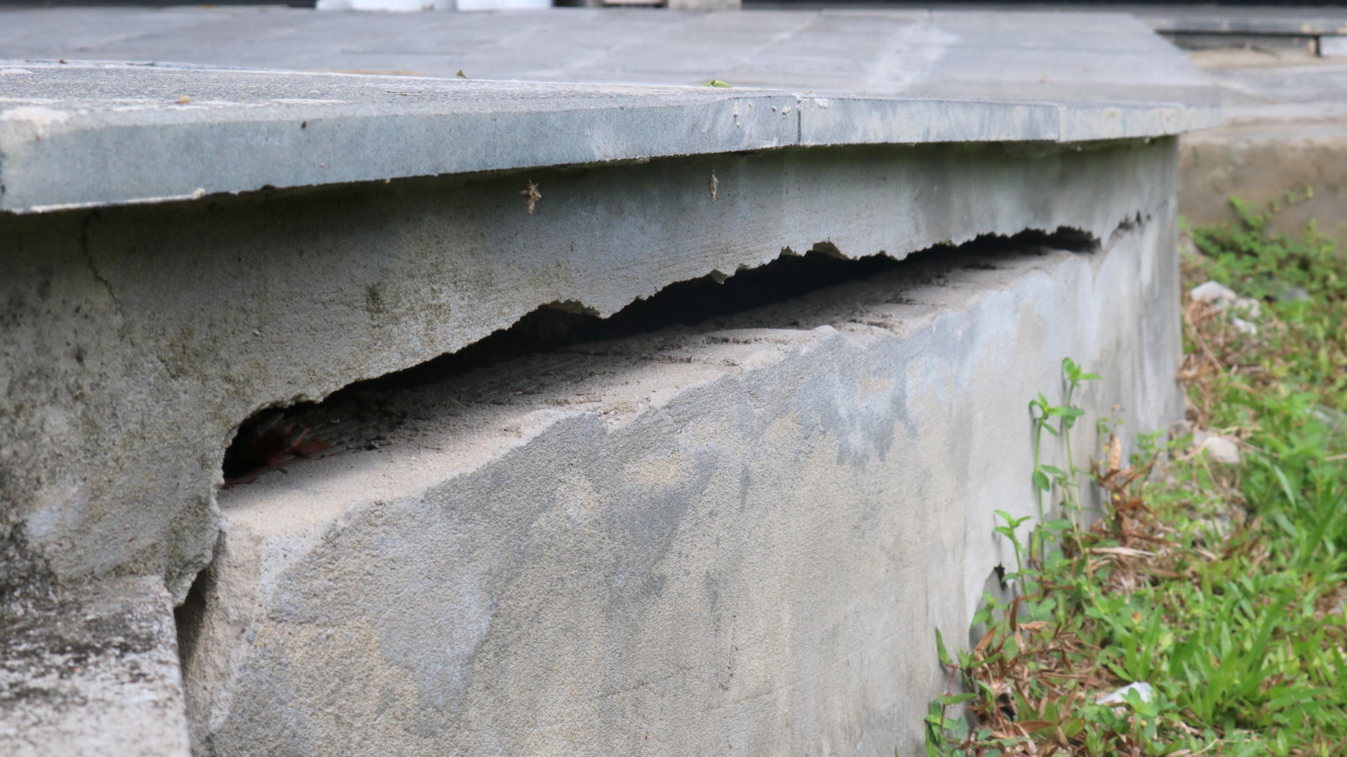 Dù mới đưa vào sử dụng hơn 1 năm nhưng một số hạng mục của tòa nhà bị sụt lún, hư hỏng.