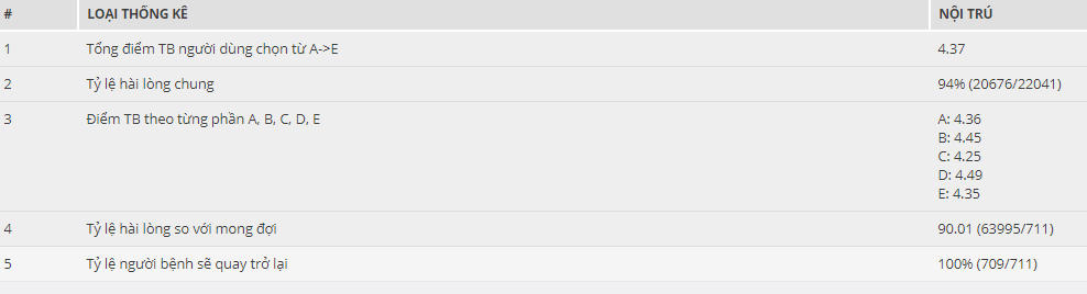 Phân tích khảo sát hài lòng người bệnh nội trú trên 711 phiếu hỏi ý kiến người bệnh, người nhà người bệnh tại trung tâm Y tế huyện Cẩm Khê năm 2017 với mức độ hài lòng chung là 94% cao hơn 1,43% so với trung bình các bệnh viện trên cả nước là 92,57%, tổng điểm trung bình là 4,37/5 điểm , bệnh nhân hài lòng nhất nhất với thái độ ứng xử, năng lực chuyên môn của nhân viên Y tế 4.49/5 điểm; Thứ hai, là sự minh bạch thông tin và thủ tục khám điều trị 4.45/5 điểm; Thứ ba, là sự hài lòng về khả năng tiếp cận 4.36/5 điểm; Thứ tư, là sự hài lòng về kết quả công cấp dịch vụ 4.35/5 điểm; Đứng cuối cùng là các tiêu chí về Cơ sở vật chất và phương tiện phục vụ người bệnh 4.25/5 điểm.