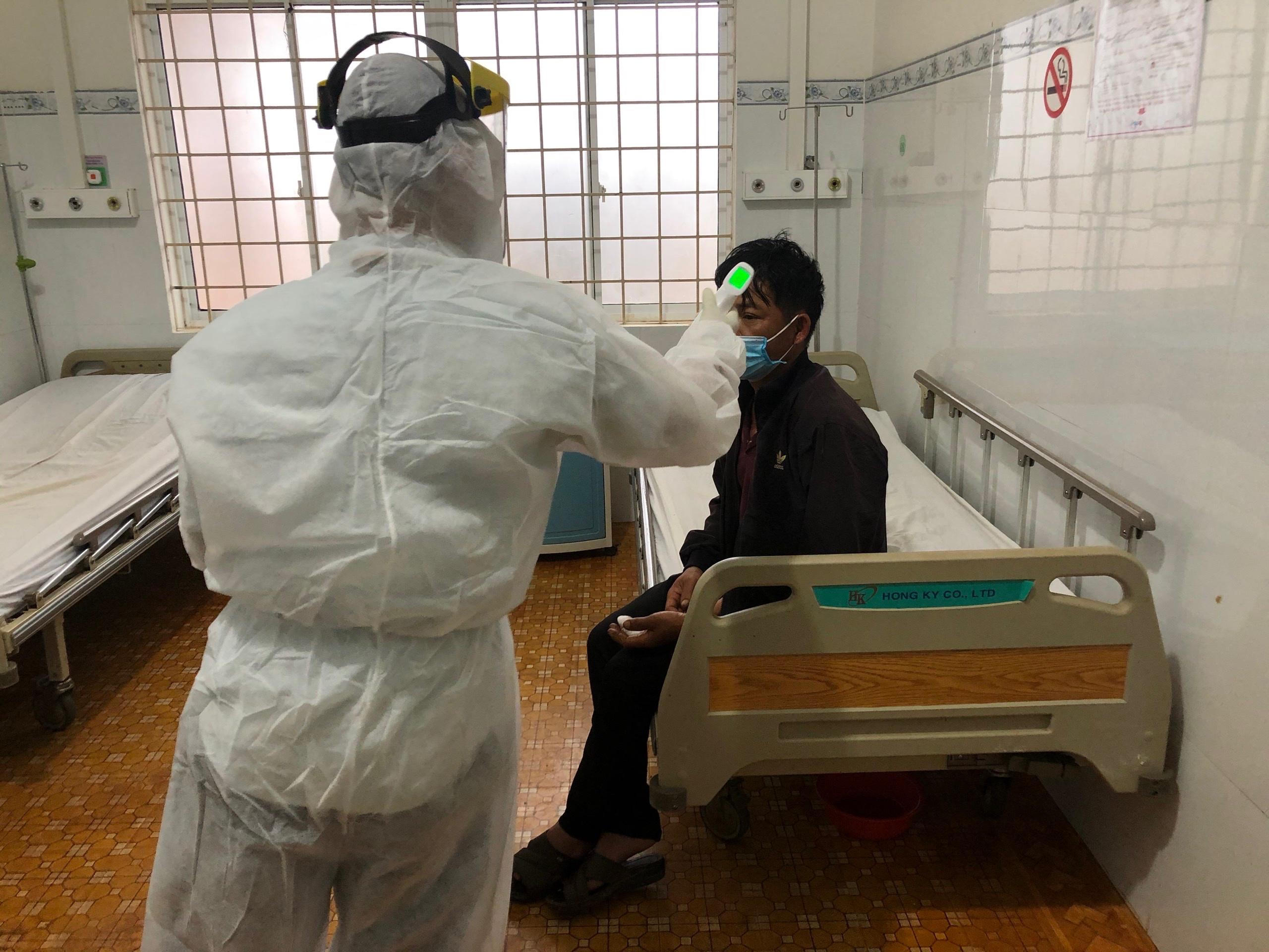 Thực hiện đo thân nhiệt phòng chống bệnh COVID-19 tại TTYT huyện Đắk Song. |