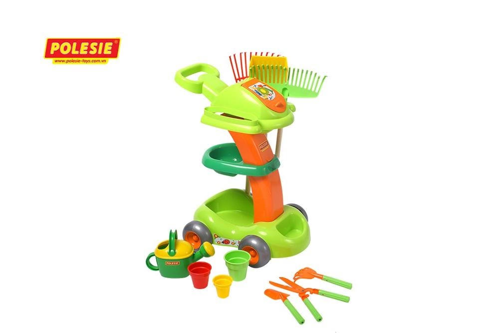 Xe được thiết kế với 4 bánh ở chân giúp trẻ có thể dễ dàng di chuyển xung quanh khu vườn nhỏ. Ngoài ra, sản phẩm còn kèm them chổi cào, xẻng xúc để trẻ có thể cùng cha mẹ chăm sóc khu vườn xinh mỗi khi rảnh rỗi.
