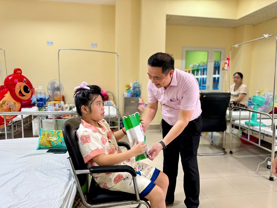 Thăm hỏi và tặng quà cho các cháu đang điều trị bệnh tại Trung tâm Nhi khoa, bệnh viện Trung ương Huế, ông Nguyễn Hoàng Anh Tuấn, Phó Giám đốc - Chủ tịch Công đoàn cơ sở Chi nhánh NHCSXH tỉnh Thừa Thiên Huế chia sẻ, tuy giá trị không lớn nhưng với những suất quà gói ghém đầy tình yêu thương, chúng tôi mong muốn mang lại niềm vui, xoa dịu nỗi đau và tiếp thêm sức mạnh cho các bệnh nhi đang phải xa nhà, từng giây từng phút chống chọi với bệnh tật. Hành trình còn dài và gian nan, rất mong các con cùng với gia đình cố gắng vượt qua những khó khăn này.