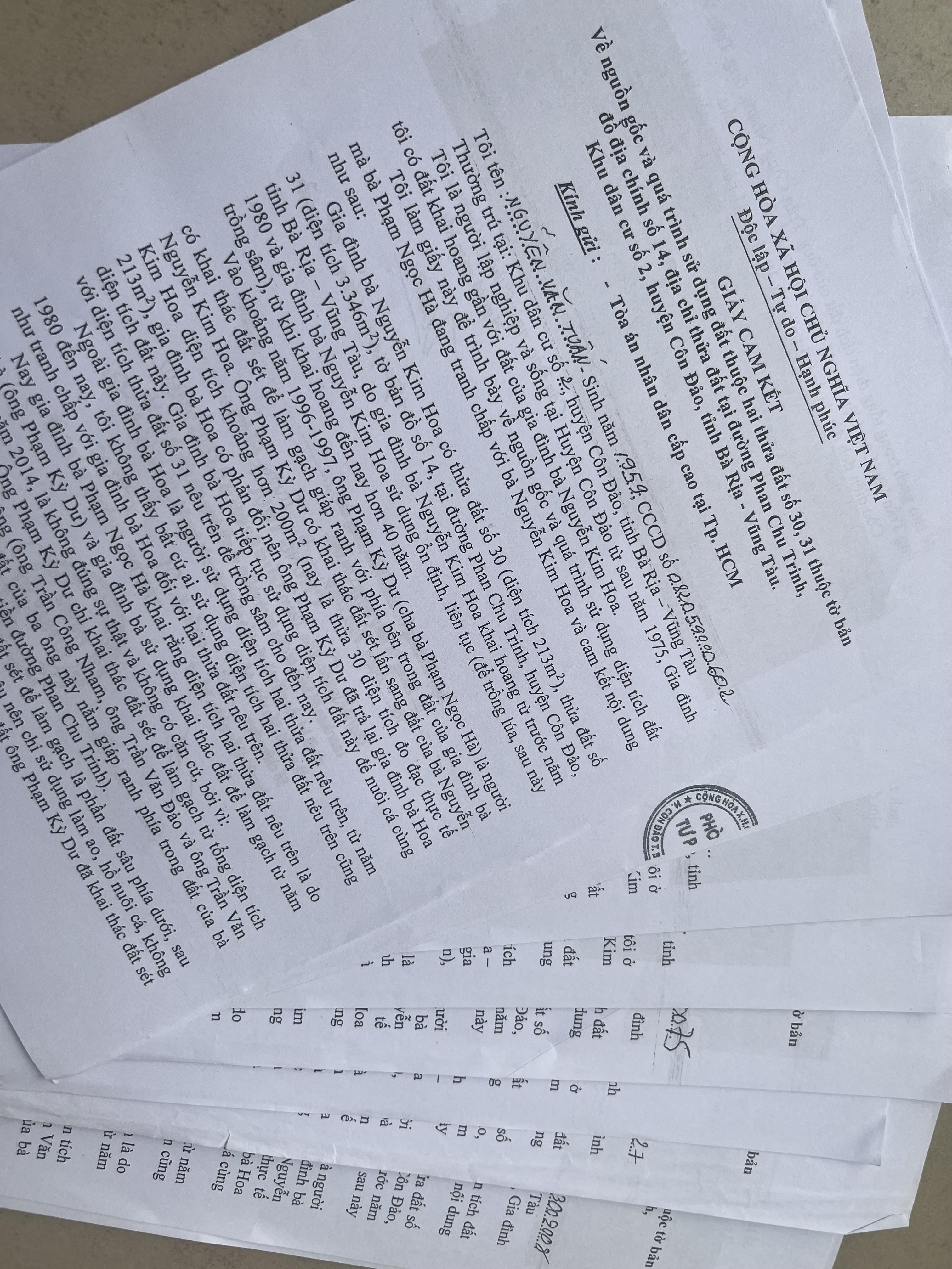 Văn bản của một số người dân Côn Đảo gửi TAND cấp cao. (Ảnh: Lương Hổ) |