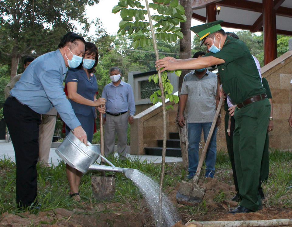 Trước đó, Đoàn đã đến viếng, thắp hương, tưởng niệm tại Khu Di tích lịch sử Nhà bia kỷ niệm nơi làm việc của Ban Tuyên huấn Trung ương Cục miền Nam thời kỳ 1961-1975 và trồng cây lưu niệm tại đây.