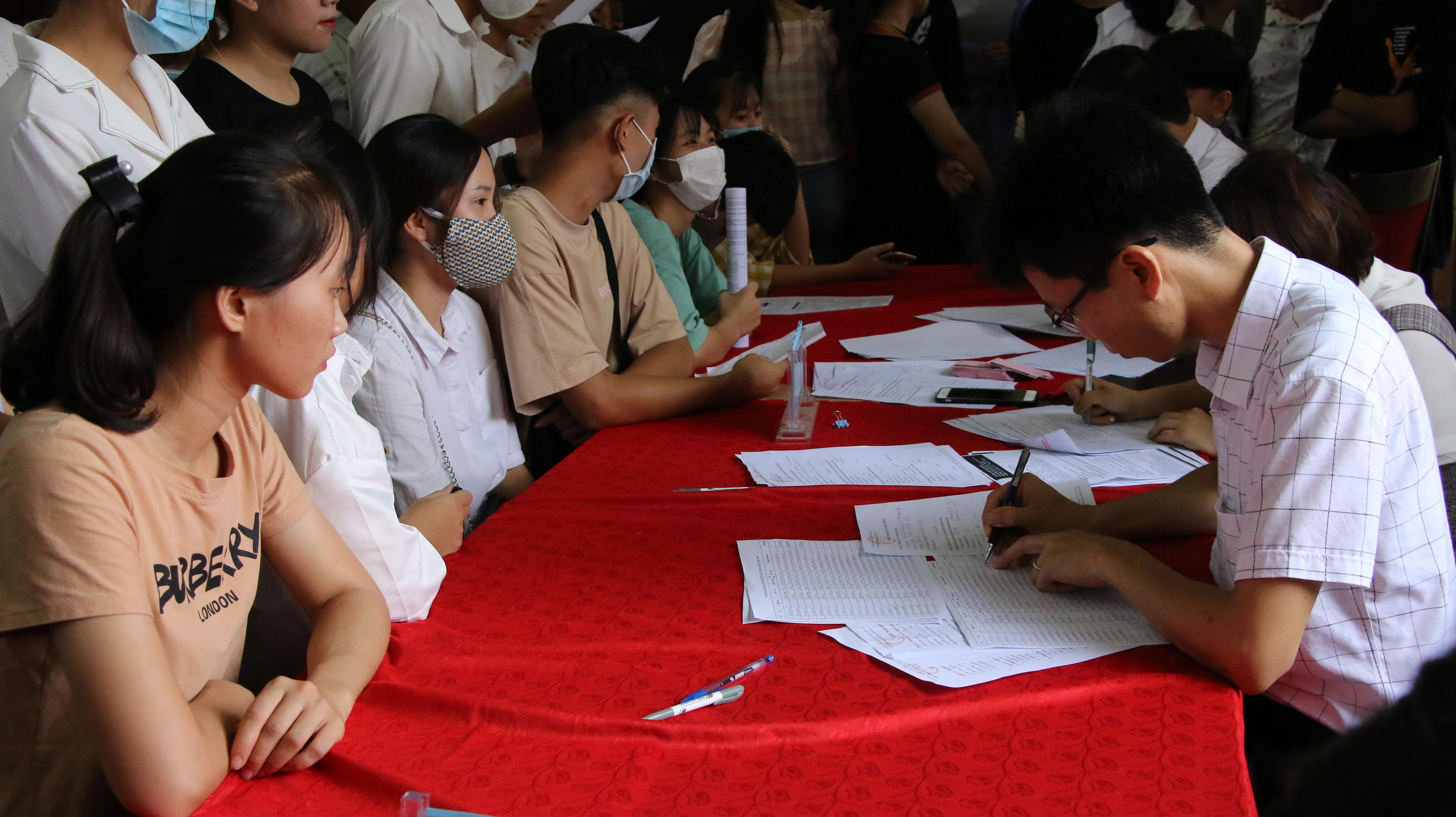 Ngay từ sáng sớm, hàng trăm học sinh, sinh viên đã tập trung về hội trường Trường Cao đẳng Lào Cai đăng ký, làm thủ tục hộ sơ nhập học. Số lượng học sinh tham gia nhập học đợt này dự kiến trên 600 học sinh vừa tốt nghiệp THPT.