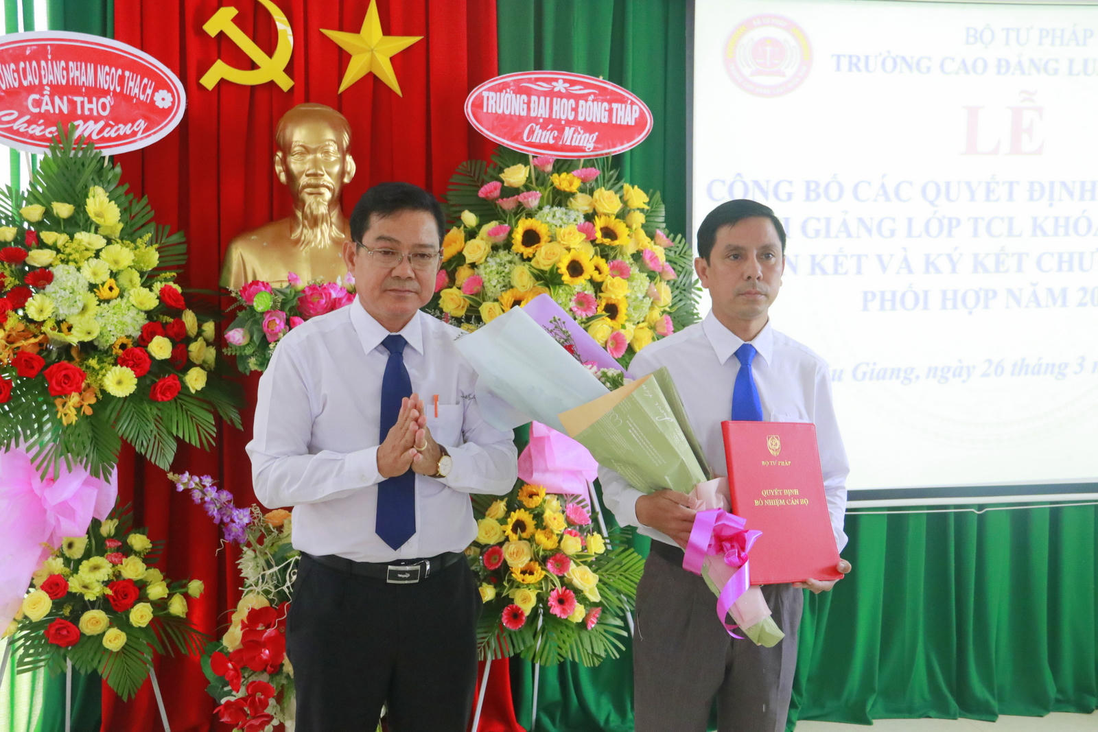 Tại buổi lễ, Ban tổ chức đã công bố quyết định nhân sự của Bộ trưởng Bộ Tư pháp về việc điều động ông Nguyễn Duy Quốc, Chấp hành viên Trung cấp, Phó Cục trưởng Cục THADS TP Cần Thơ giữ chức vụ Phó Hiệu trưởng Trường Cao đẳng Luật miền Nam. Bên cạnh đó, Trường Cao đẳng Luật miền Nam cũng công bố quyết định bổ nhiệm nhiều nhân sự các khoa, phòng, ban thuộc Trường.