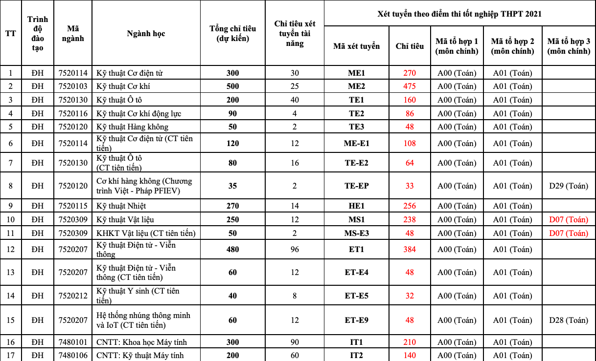 Năm 2021, Trường Đại học Bách khoa Hà Nội dự kiến tuyển khoảng 7.400 chỉ tiêu. Do dịch COVID-19, nhà trường đã hủy kỳ thi kiểm tra tư duy, dành toàn bộ chỉ tiêu của phương thức này cho xét tuyển dựa vào kỳ thi tốt nghiệp THPT.
