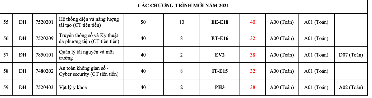 Trường Đại học Bách khoa Hà Nội xét tuyển theo phương thức xét điểm thi tốt nghiệp THPT năm 2021. Mức điểm nhận hồ sơ 59 chương trình đào tạo là 23 điểm.