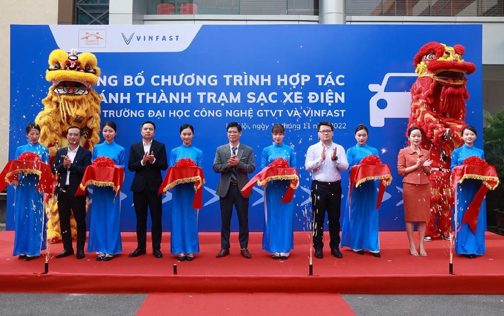Ngày 14/11/2022, VinFast chính thức công bố chương trình hợp tác và khai trương trạm sạc ô tô điện VinFast tại Trường Đại học Công nghệ Giao thông Vận tải (số 54, phố Triều Khúc, quận Thanh Xuân, Hà Nội).