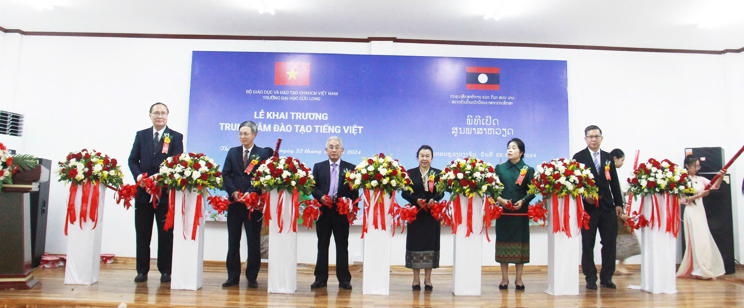 Nhằm tạo điều kiện thuận lợi cho lưu học sinh Lào, Trường đã thành lập 2 Trung tâm đào tạo tiếng Việt cho người nước ngoài tại Lào. Tháng 9/2022, Trường phối hợp Viện Công nghệ thông tin và Truyền thông - Vụ Đổi mới và Công nghệ (Bộ CN&TT Lào) khánh thành Trung tâm đào tạo tiếng Việt Hữu nghị UCL- IICT tại Thủ đô Vientiane. Đến tháng 11/2024 tại thủ đô Viêng Chăn (CHDCND Lào), Trường ĐH Cửu Long phối hợp Bộ Giáo dục- Thể thao Lào khai trương Trung tâm đào tạo tiếng Việt thứ hai tại nước này. Trung tâm đặt tại Viện Nghiên cứu khoa học giáo dục, Bộ Giáo dục- Thể thao Lào với diện tích 100m2.
