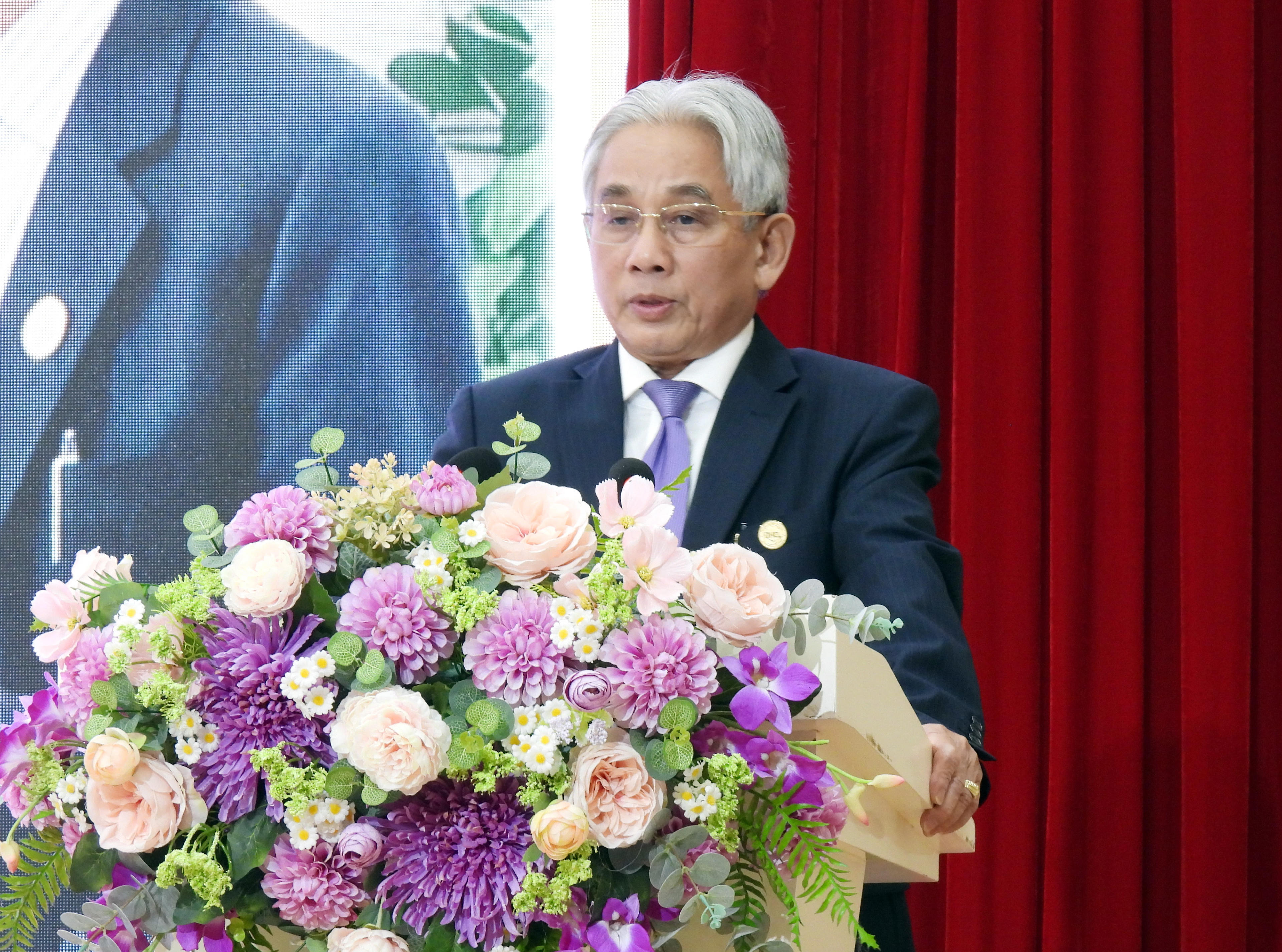 Nhà giáo ưu tú, PGS TS Lương Minh Cừ - Hiệu trưởng Trường Đại học Cửu Long phát biểu tại buổi lễ. (Ảnh Nguyễn Văn Dô). |