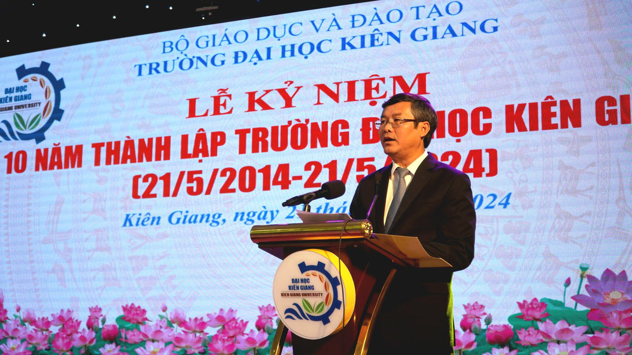 (PLVN) - Sáng 21/5, Trường Đại học Kiên Giang tổ chức lễ kỷ niệm 10 năm thành lập. Đến dự có Phó giáo sư, Tiến sĩ Nguyễn Văn Phúc - Thứ trưởng Bộ Giáo dục và Đào tạo.