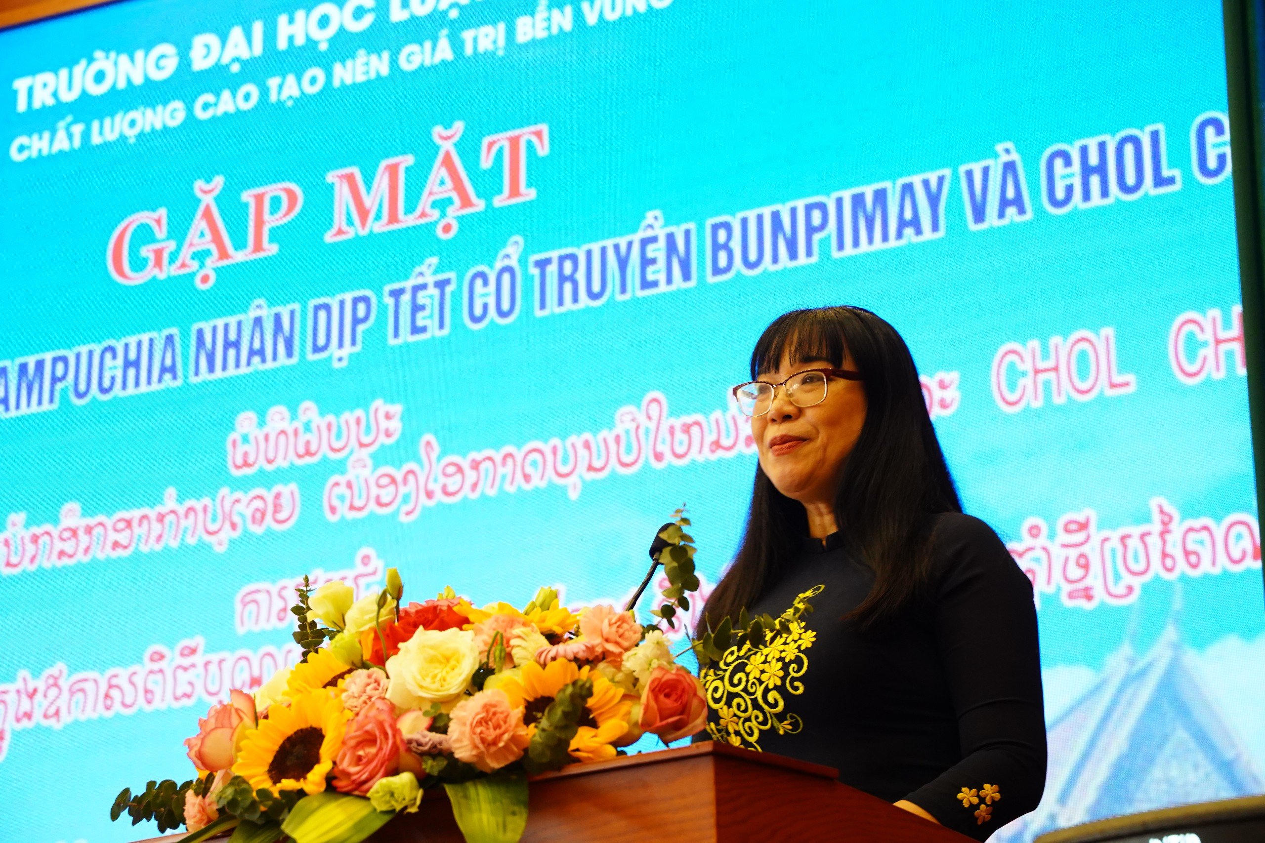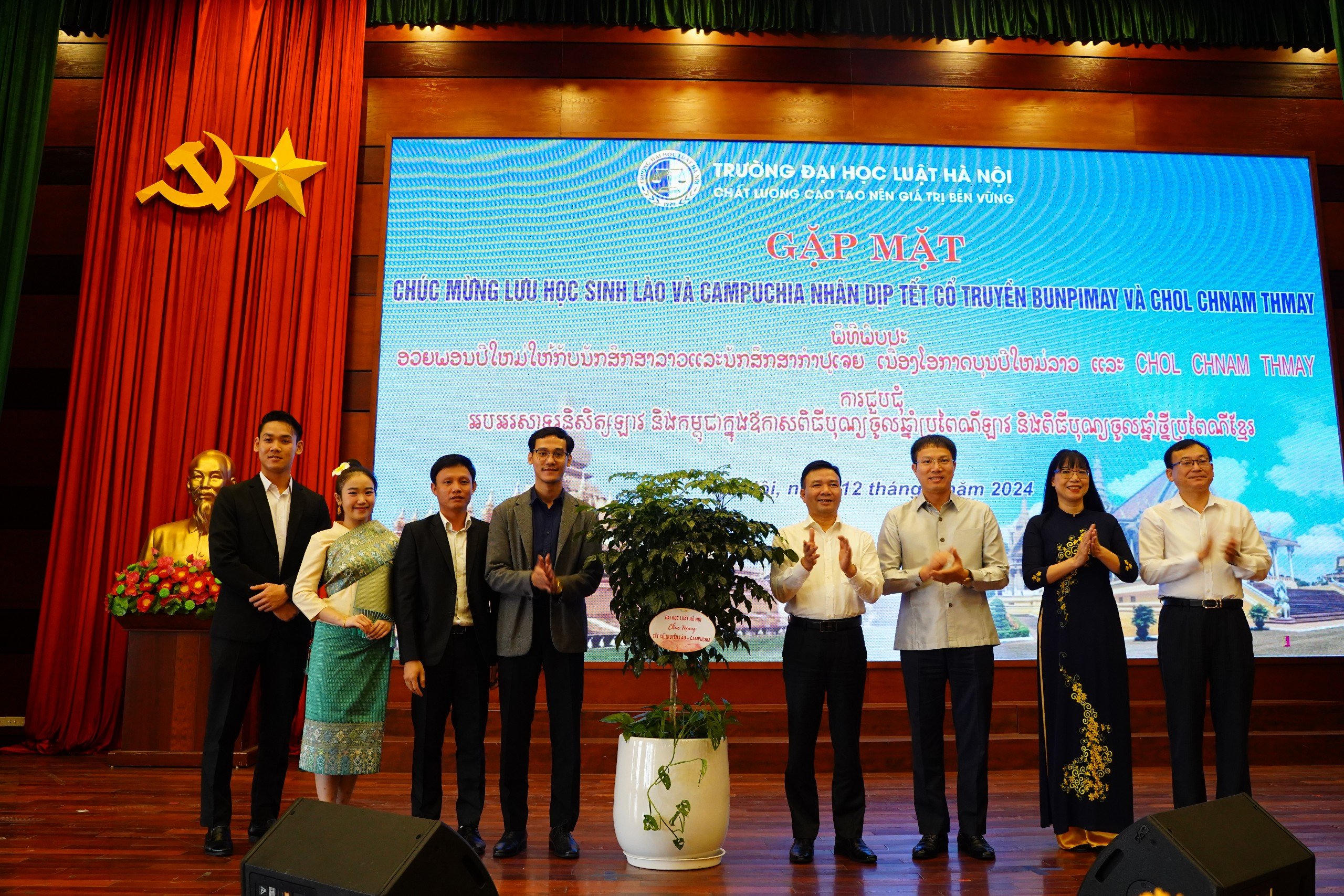 Nhân dịp Tết cổ truyền Bunpimay của Lào và tết Chol Chnam Thmay của Campuchia, thay mặt Đảng ủy, Hội đồng Trường, Ban Giám hiệu, cùng toàn thể thầy, cô giáo Trường Đại học Luật Hà Nội, Phó hiệu trưởng thường trực Trường Đại học Luật Hà Nội Vũ Thị Lan Anh gửi những lời chúc tốt đẹp nhất đến các bạn sinh viên, học viên Lào, Campuchia đang học tập tại Trường Đại học Luật Hà Nội.