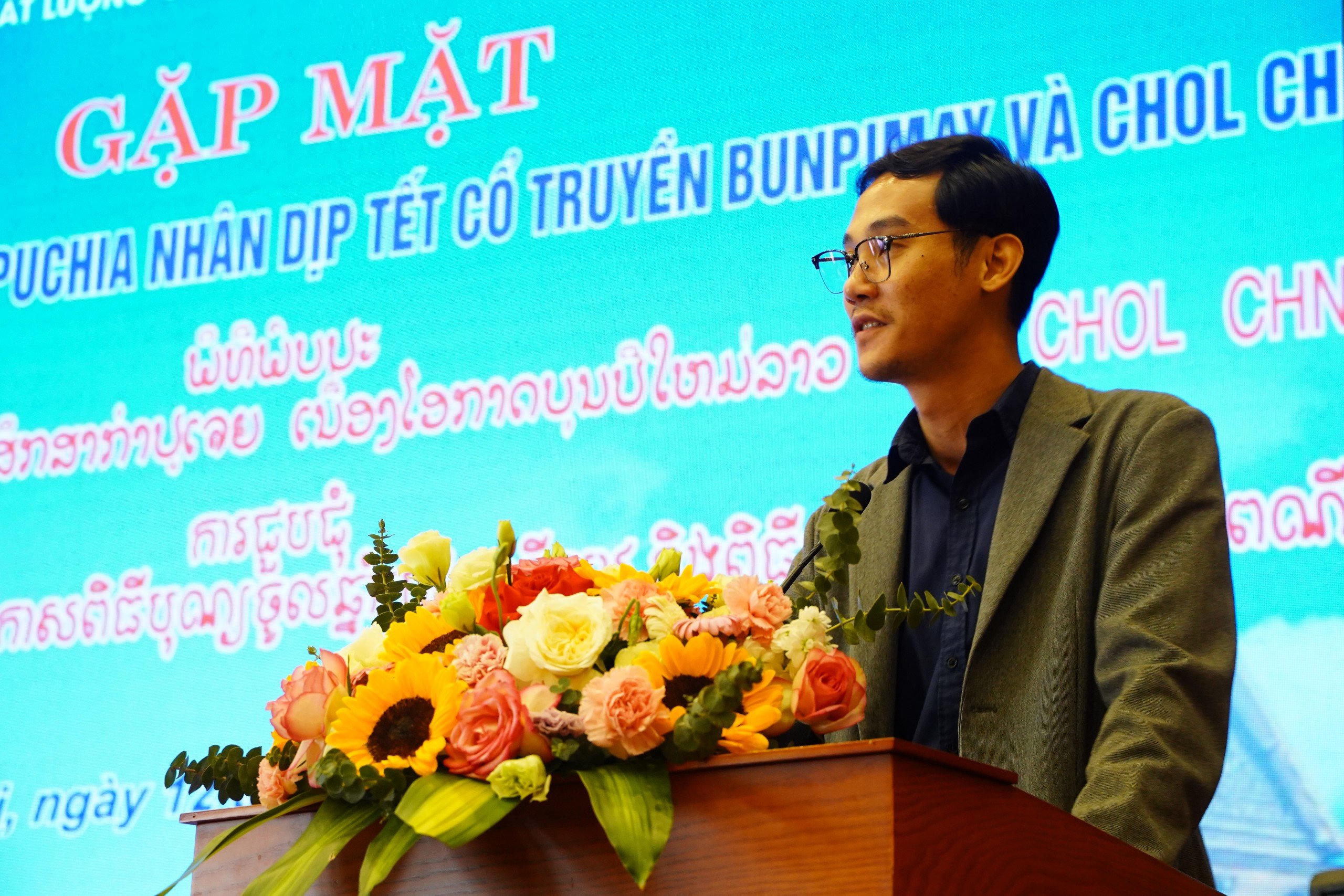 Bí thư thứ 2, Phòng Tham tán Kinh tế - Thương mại Đại sứ quán Lào tại Việt Nam Phonepaseuth Keodouangdy phát biểu tại buổi gặp mặt. |