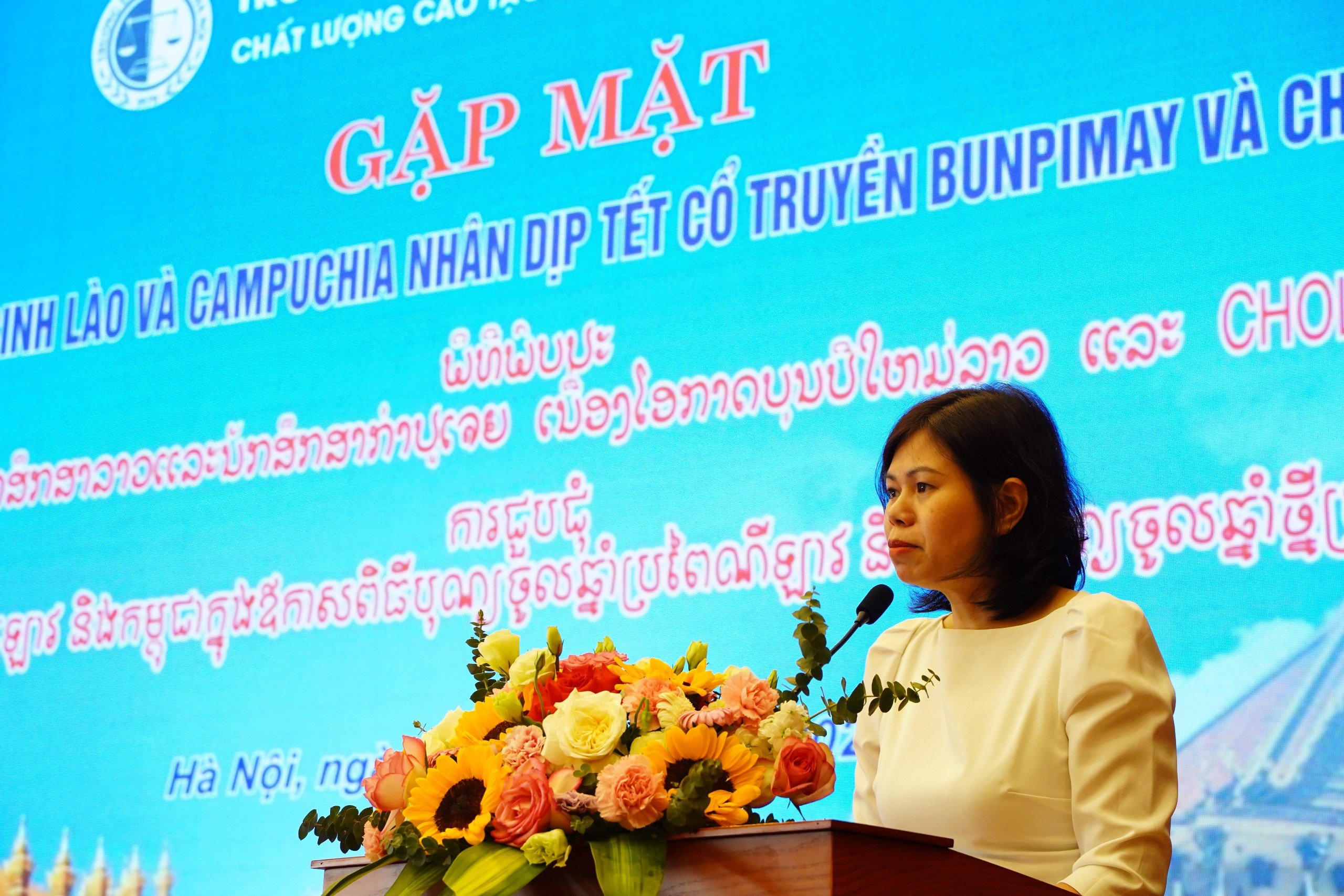 Bày tỏ vui mừng tại buổi gặp mặt, Phó Vụ trưởng Vụ Hợp tác quốc tế, Bộ Tư pháp Dương Thiên Hương gửi lời chúc mừng đến các lưu học sinh Lào và Campuchia nhân dịp Tết cổ truyền. Bà Dương Thiên Hương khẳng định quan hệ hợp tác pháp luật, tư pháp giữa Việt Nam- Lào, Việt Nam– Campuchia nói chung, mối quan hệ giữa Bộ Tư pháp Việt Nam - Bộ Tư pháp Lào, Bộ Tư pháp Việt Nam - Bộ Tư pháp Campuchia nói riêng thời gian qua ngày càng gắn bó, thực chất và hiệu quả với nội dung hợp tác phong phú trên tất cả các lĩnh vực từ trung ương đến địa phương. Trong lĩnh vực hợp tác đào tạo, bồi dưỡng về luật, các cơ sở đào tạo luật của Bộ Tư pháp Việt Nam, đặc biệt là Trường Đại học Luật Hà Nội đã có nhiều nỗ lực trong công tác đào tạo, bồi dưỡng, nâng cao chất lượng nguồn nhân lực pháp luật cho Bộ Tư pháp Lào và Bộ Tư pháp Campuchia.