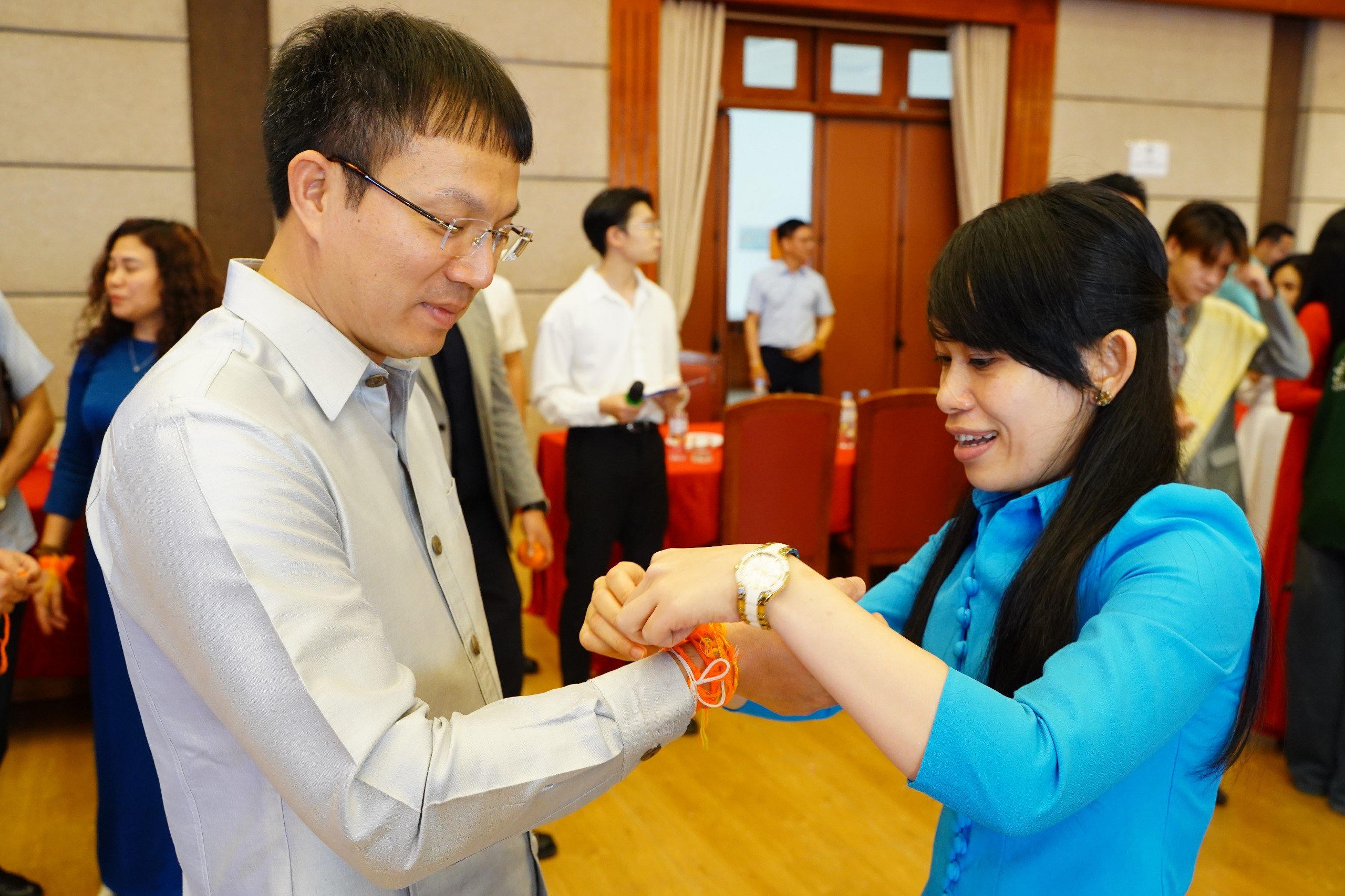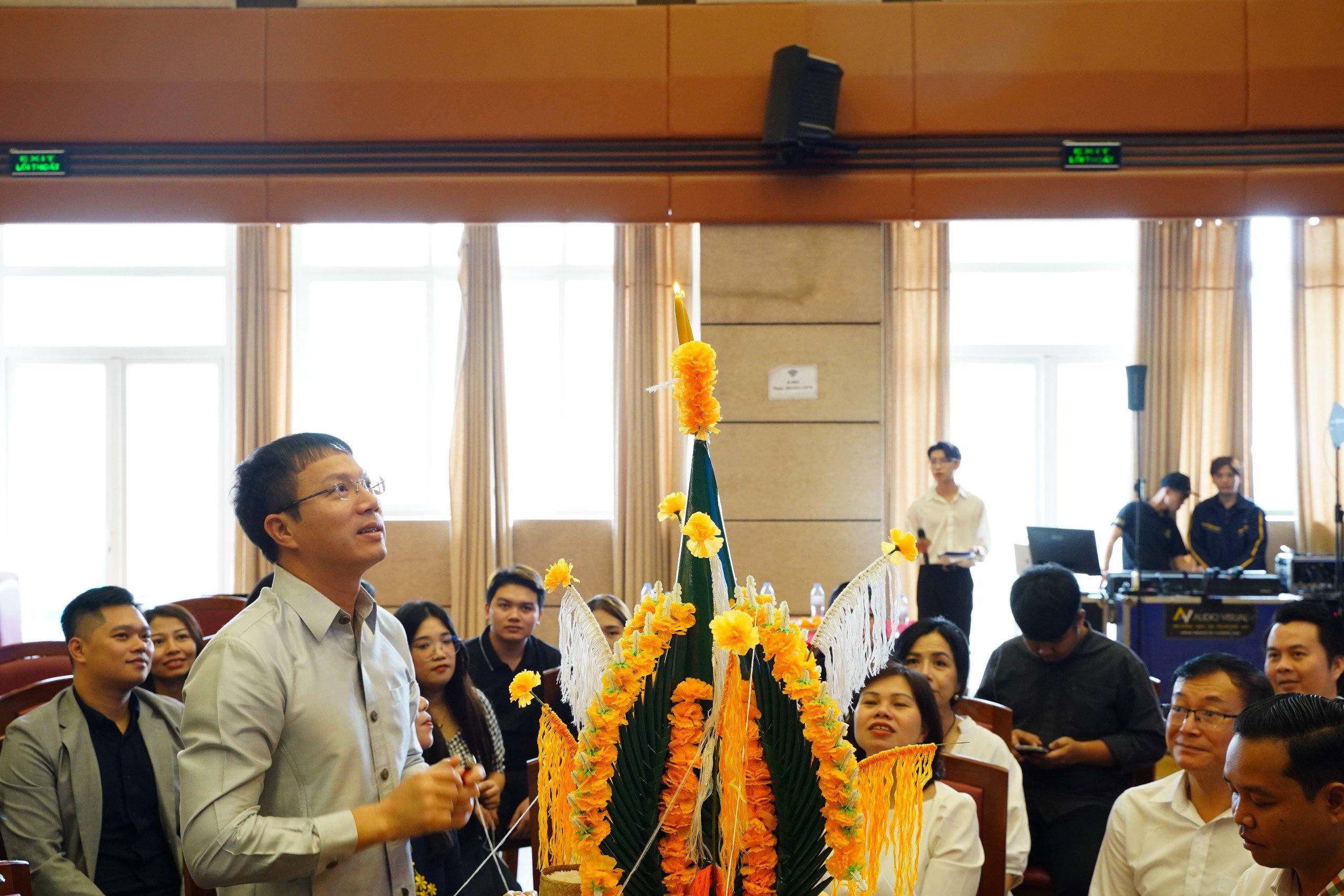 Dịp này, các đại biểu, Ban Giám hiệu trường, các thầy, cô giáo cùng toàn thể các lưu học sinh Lào, Campuchia tại Trường Đại học Luật Hà Nội cùng trải nghiệm một số hoạt động trong văn hóa đón Tết của đất nước Lào, Campuchia.