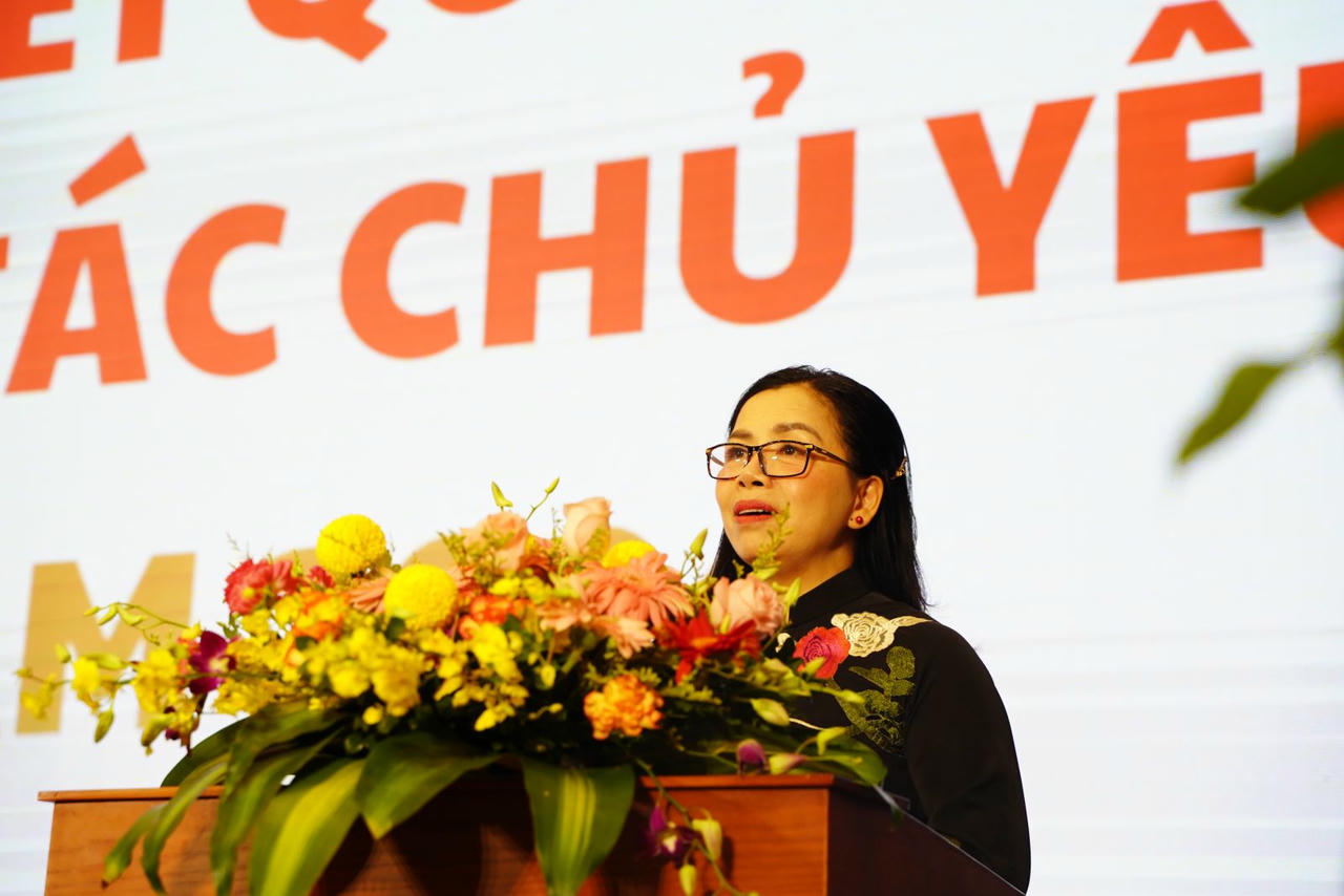PGS. TS. Vũ Thị Lan Anh - Phó hiệu trưởng Thường trực Trường phát biểu đáp từ. |