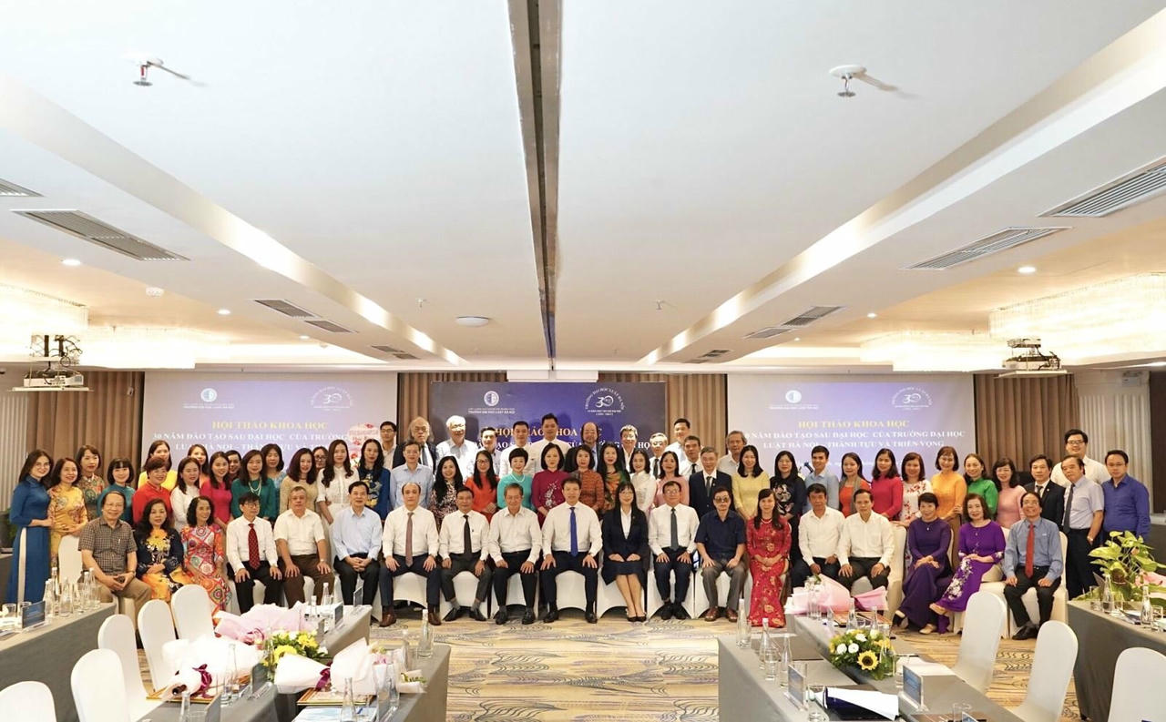 Các đại biểu chụp ảnh tại Hội thảo 30 năm đào tạo sau đại học của Trường Đại học Luật Hà Nội – Thành tựu và triển vọng. |