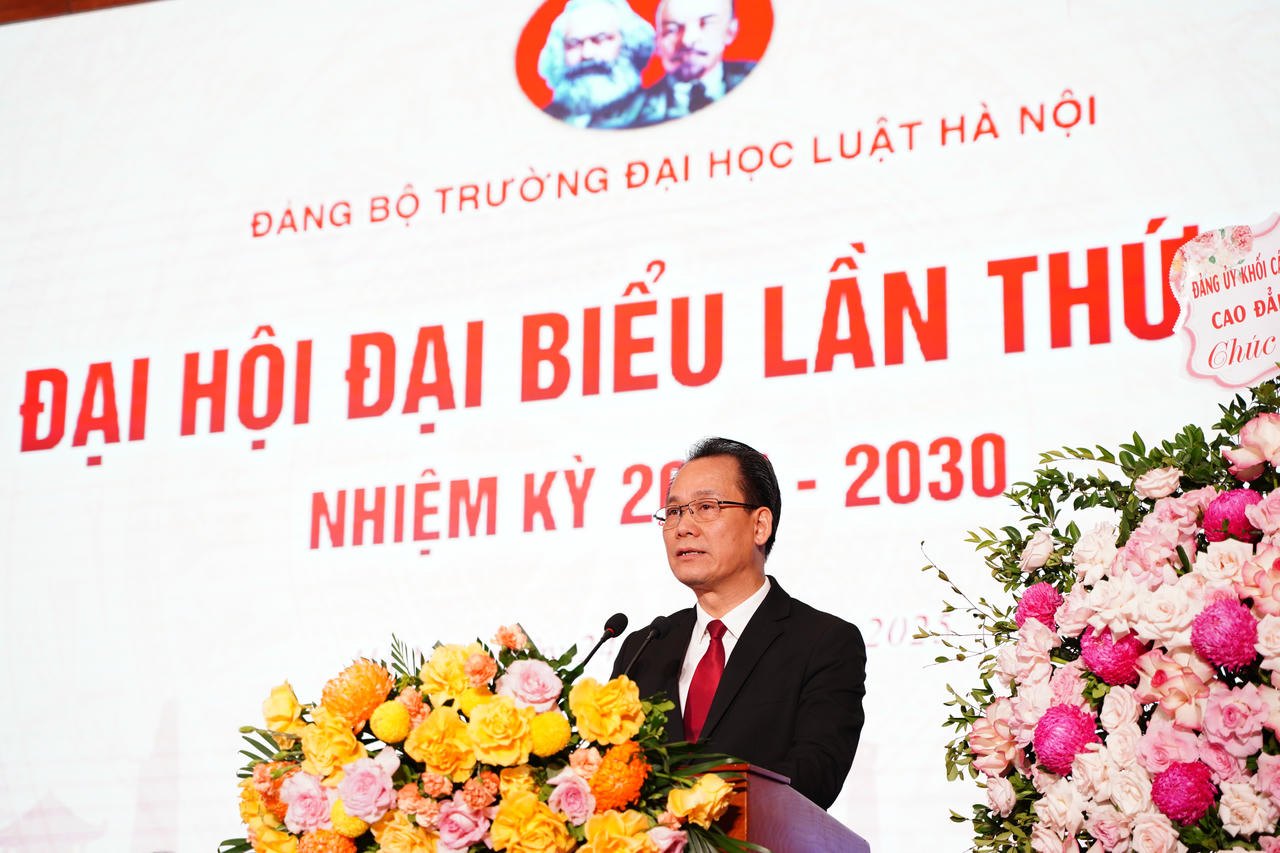 Phát biểu chỉ đạo Đại hội, đồng chí Nguyễn Thanh Sơn, Thành ủy viên, Bí thư Đảng ủy Khối các Trường Đại học, Cao đẳng nhấn mạnh, để xây dựng Trường Đại học Luật Hà Nội trở thành cơ sở giáo dục đại học có năng lực hàng đầu về nghiên cứu khoa học pháp lý, phát triển theo hướng đa ngành, liên ngành, hội nhập với đào tạo luật ở khu vực và thế giới, cần tập trung thực hiện một số nhiệm vụ.