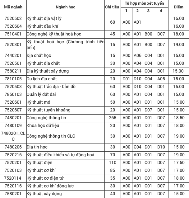 Trường Đại học Mỏ - Địa chất công bố điểm sàn xét tuyển từ 15 đến 19