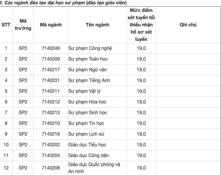 Trường Đại học Sư phạm Hà Nội 2 công bố điểm sàn xét tuyển
