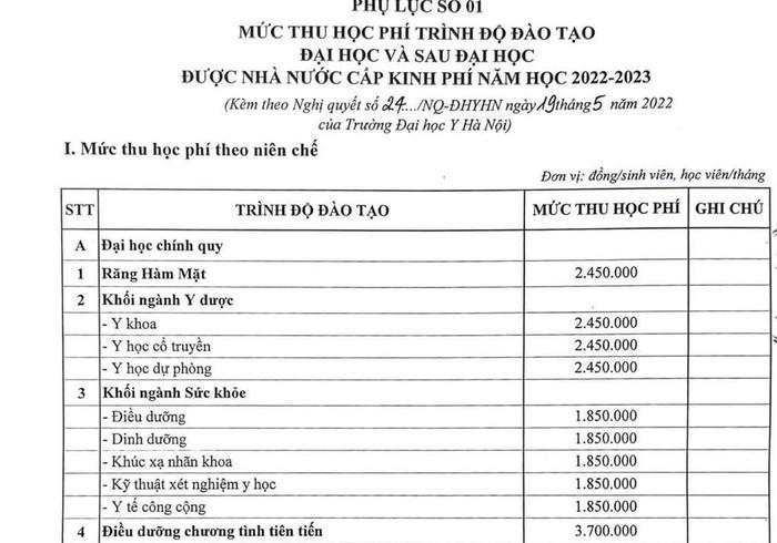 Cụ thể học phí của Trường Đại học Y Hà Nội trong năm học 2022 - 2023 như sau: