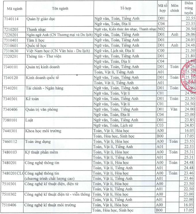 Ở nhóm ngành ngoài Sư phạm, trừ Khoa học môi trường và Công nghệ kỹ thuật môi trường lấy điểm chuẩn thấp nhất 16,05-17,05, tất cả ngành còn lại trên 20.