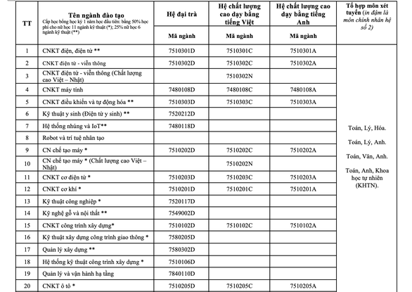 Mỗi thí sinh được đăng ký tối đa 20 nguyện vọng, xét theo thứ tự ưu tiên. Thời gian nộp hồ sơ xét tuyển thẳng từ ngày 23/9 đến 17h ngày 28/9. Kết quả trúng tuyển sẽ được Đại học Sư phạm Kỹ thuật TP HCM công bố vào ngày 30/9.