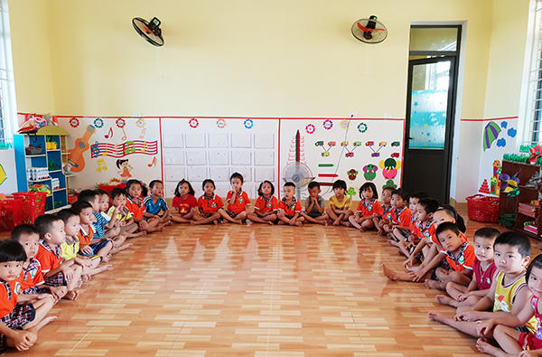 Cô giáo Nguyễn Thị Thu Hà cho biết “Do là xã nghèo, nhân dân chủ yếu làm nông nên điều kiện chăm sóc cho trẻ không được như các địa phương khác. Thấu hiểu vấn đề đó, nhà trường đã chủ động cùng với Hội phụ huynh vận động các mạnh thường quân, các doanh nghiệp trên địa bàn hỗ trợ phần nào để chăm lo cho các cháu, nhất là các cháu thuộc diện hộ nghèo, cận nghèo. Như dịp Tết trung thu, trường đã vận động được số tiền và quà trị giá 18 triệu đồng để tặng cho các cháu. Hay vận động các tổ chức từ thiện chung tay chăm sóc cho trẻ có hoàn cảnh khó khăn”.