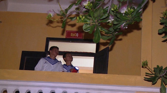 Dưới ánh đèn bông hoa thật lung linh, huyền ảo. Sau đó, cây kết trái cho những quả hình khối vuông rất lạ mắt. Và vì lá cây này rất giống với cây bàng trong đất liền nên lính đảo lấy tên bàng vuông đặt cho cây...