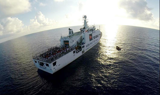 | Tàu KN 490 đưa đoàn kiều bào ra thăm Trường Sa tháng 4/2016. |
