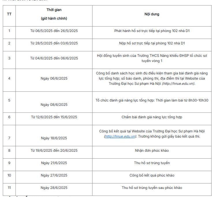 Thời gian tuyển sinh như sau: