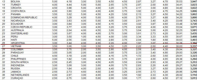 Trong bảng xếp hạng hôm qua, Trương Thị May là thí sinh dẫn đầu trong khối nước Đông Nam Á. Trương Thị May "vượt mặt" các thí sinh Châu Á được cho là "nặng ký" như Hàn Quốc, Thái Lan...